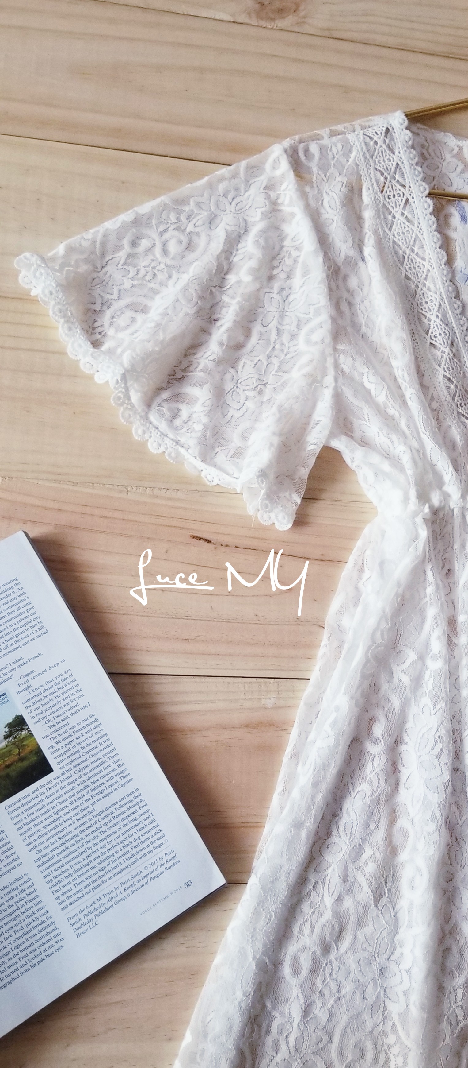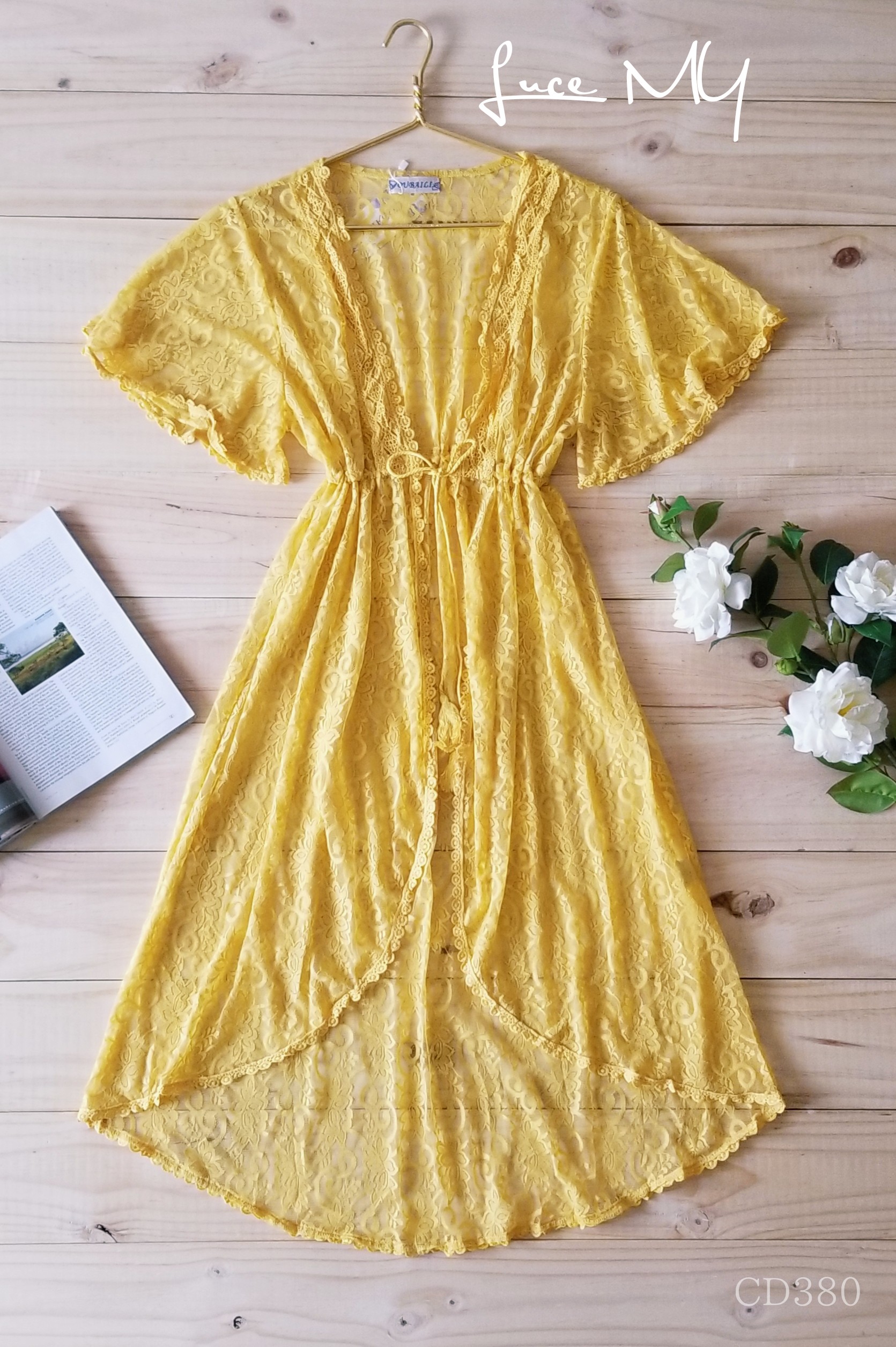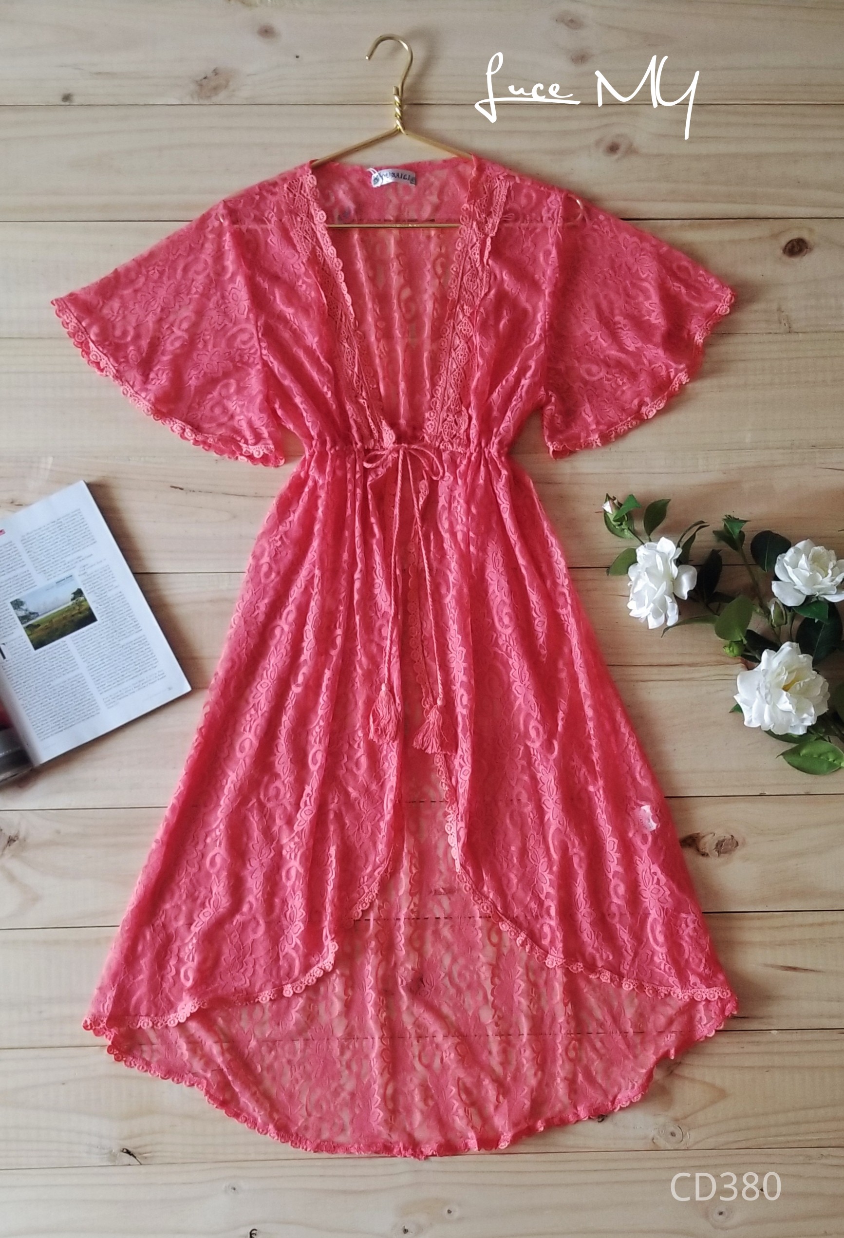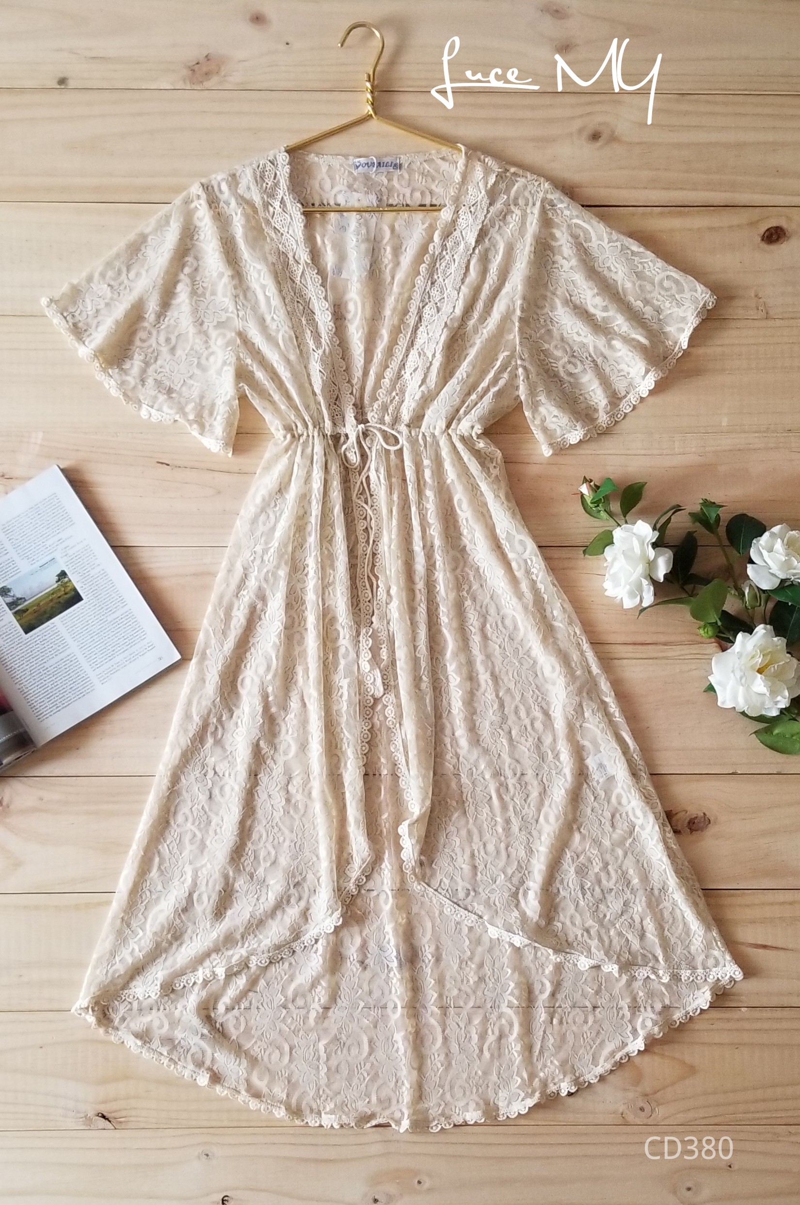 Descripción: Kimono de encaje,es ajustable en la cintura, manga corta material 65% cotton y 35% poliéster. Promoción Si llevas dos kimonos por Q185.00