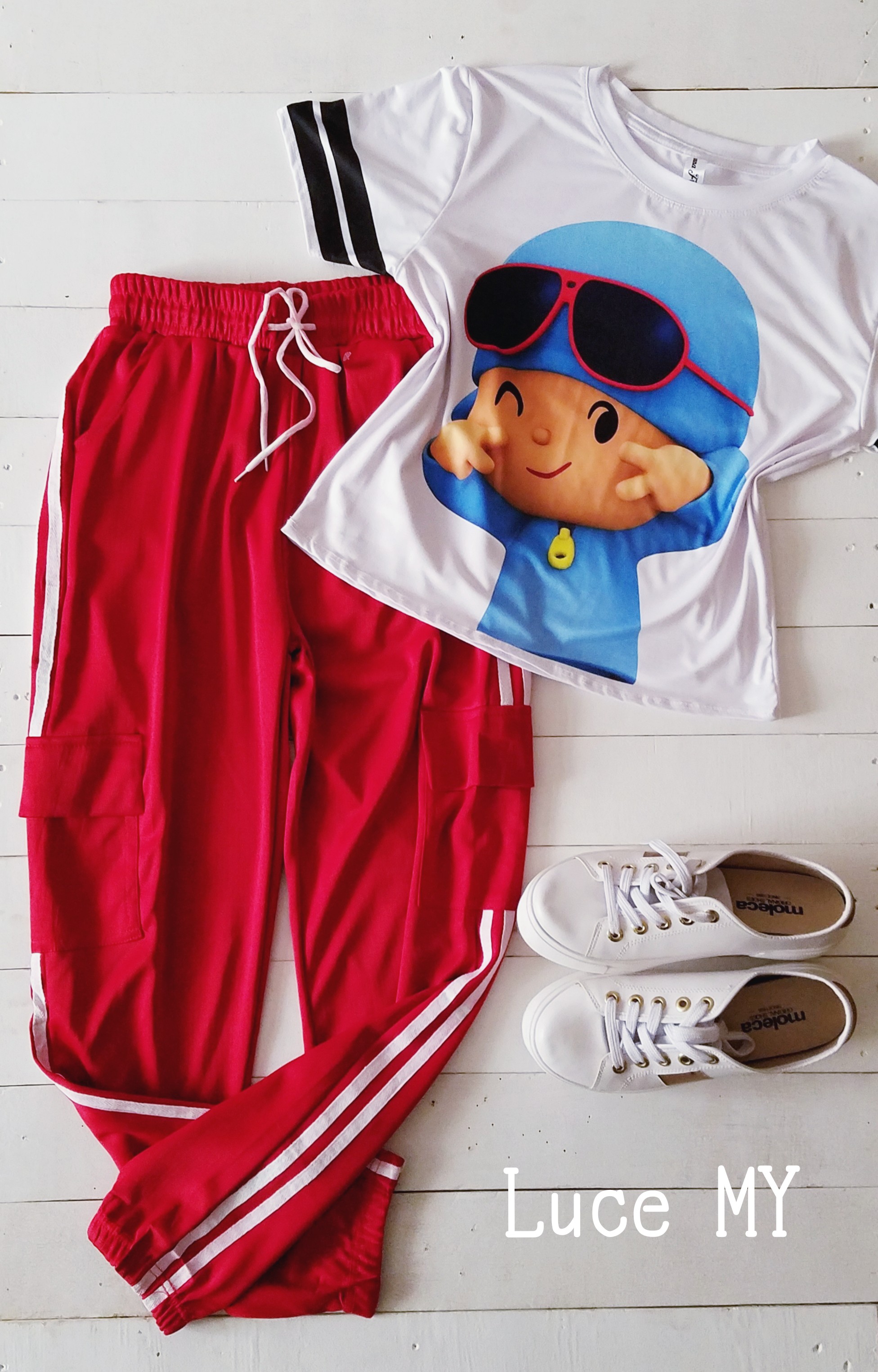 Descripción: Pants con elástico en la cintura y en las tobilleras material 85% poliéster, 10% algodón y 5% elástico. Playera con sublimado en la parte de enfrente es tipo licra y en la parte de atrás es de algodón.