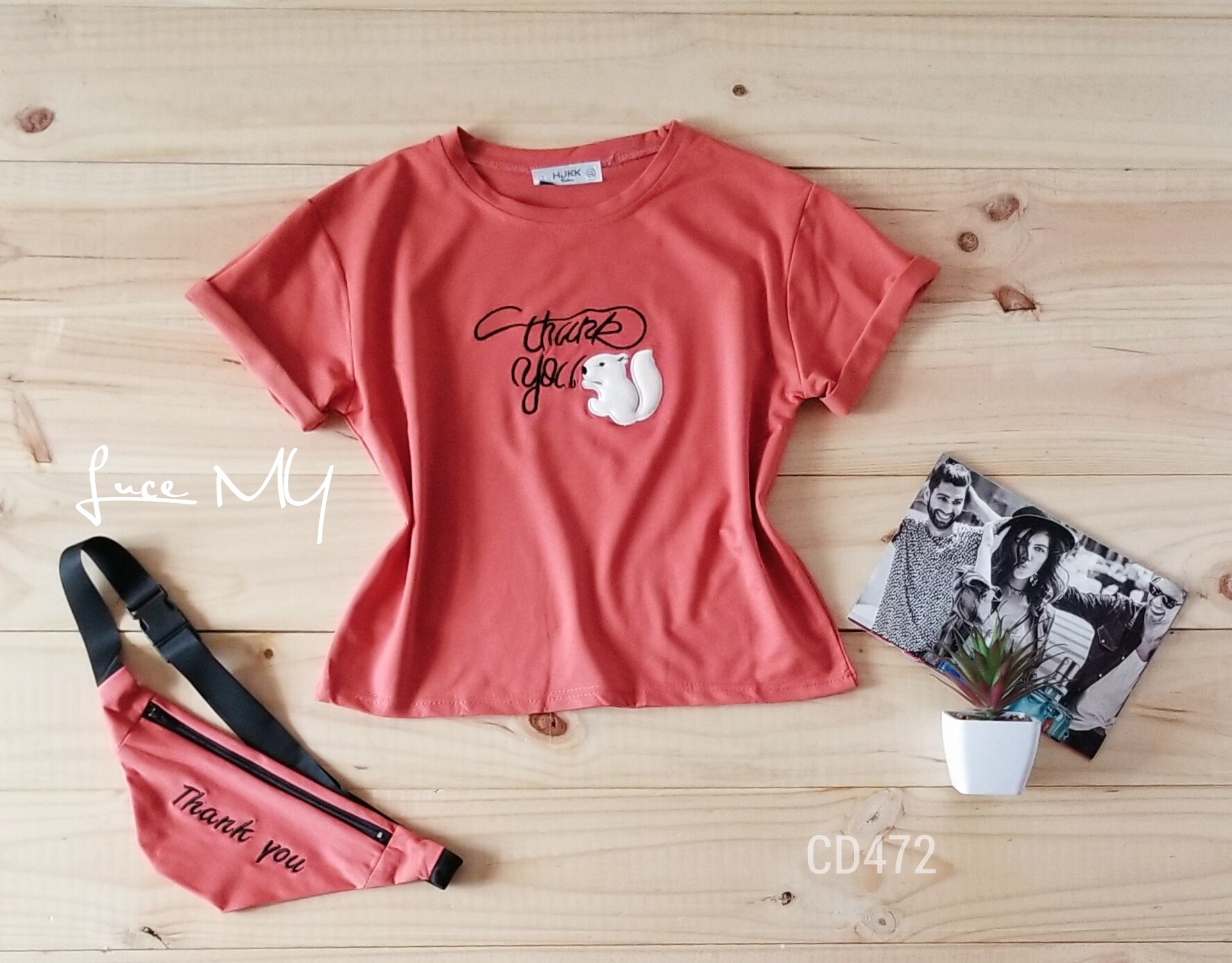 Descripción: Playera de ardilla,cuello redondo, manga corta, cuenta con una bolsa canguro.