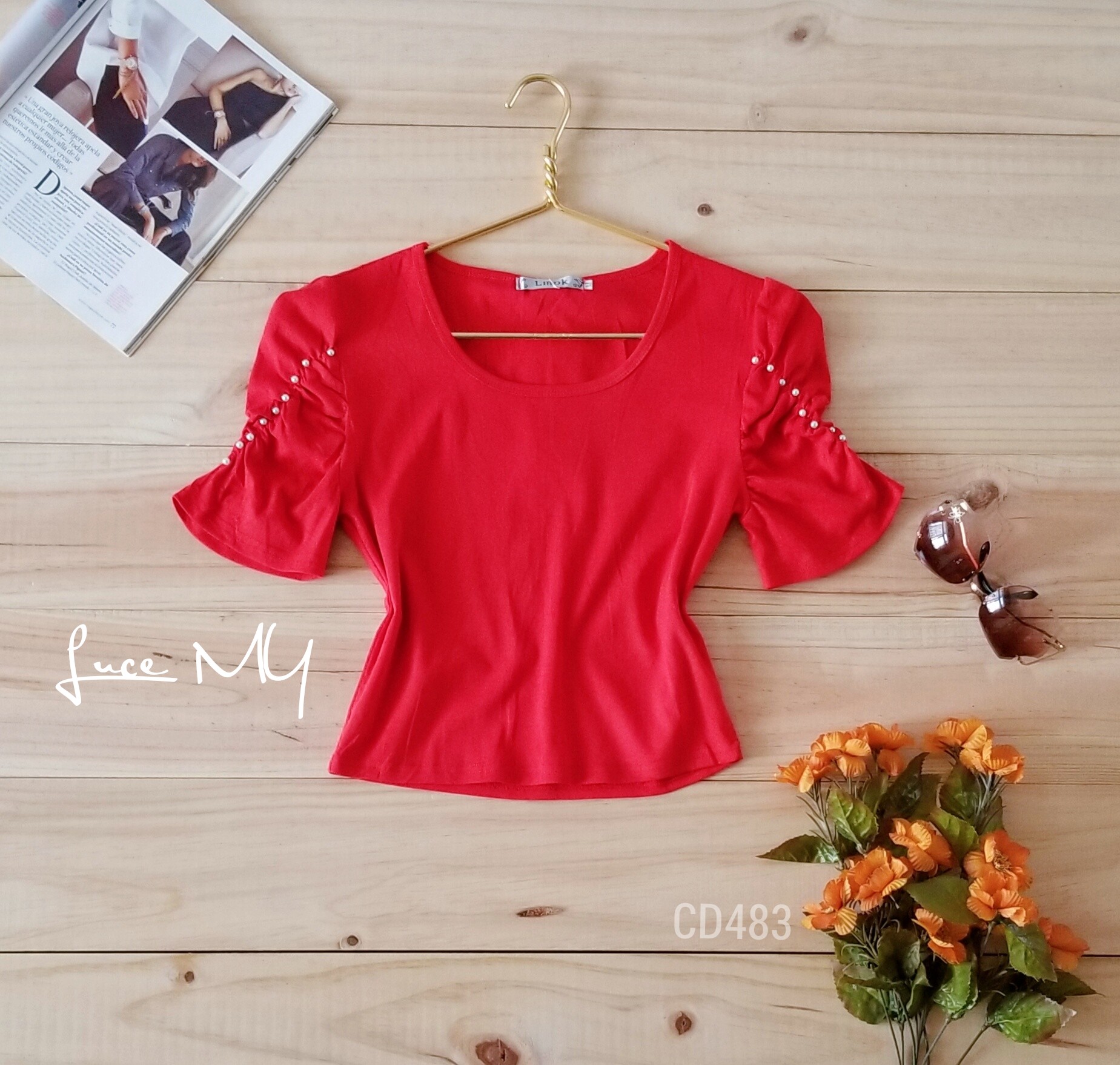Descripción: Blusa Puff Sleeve, manga corta con perlas,cuello redondo, material 65% poliéster y 35% algodón. Promoción Si llevas dos blusas a solo por Q155.00