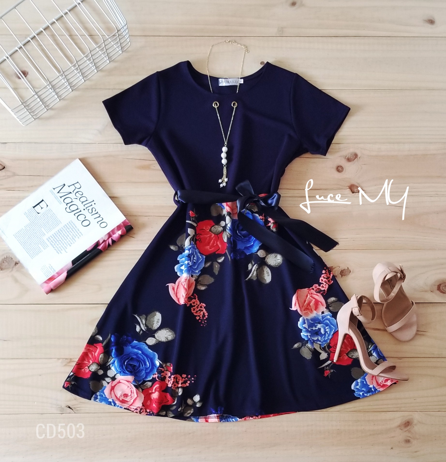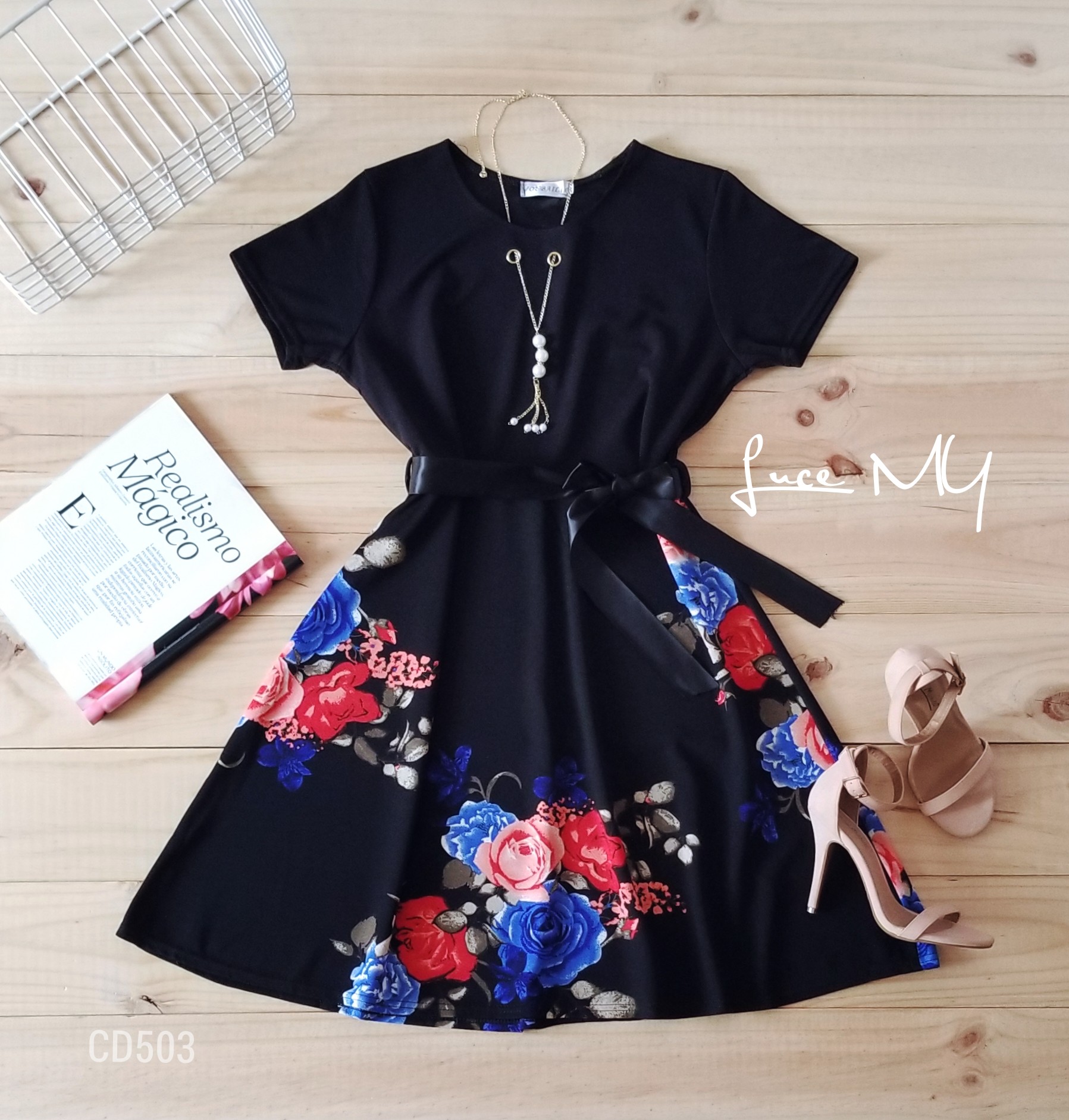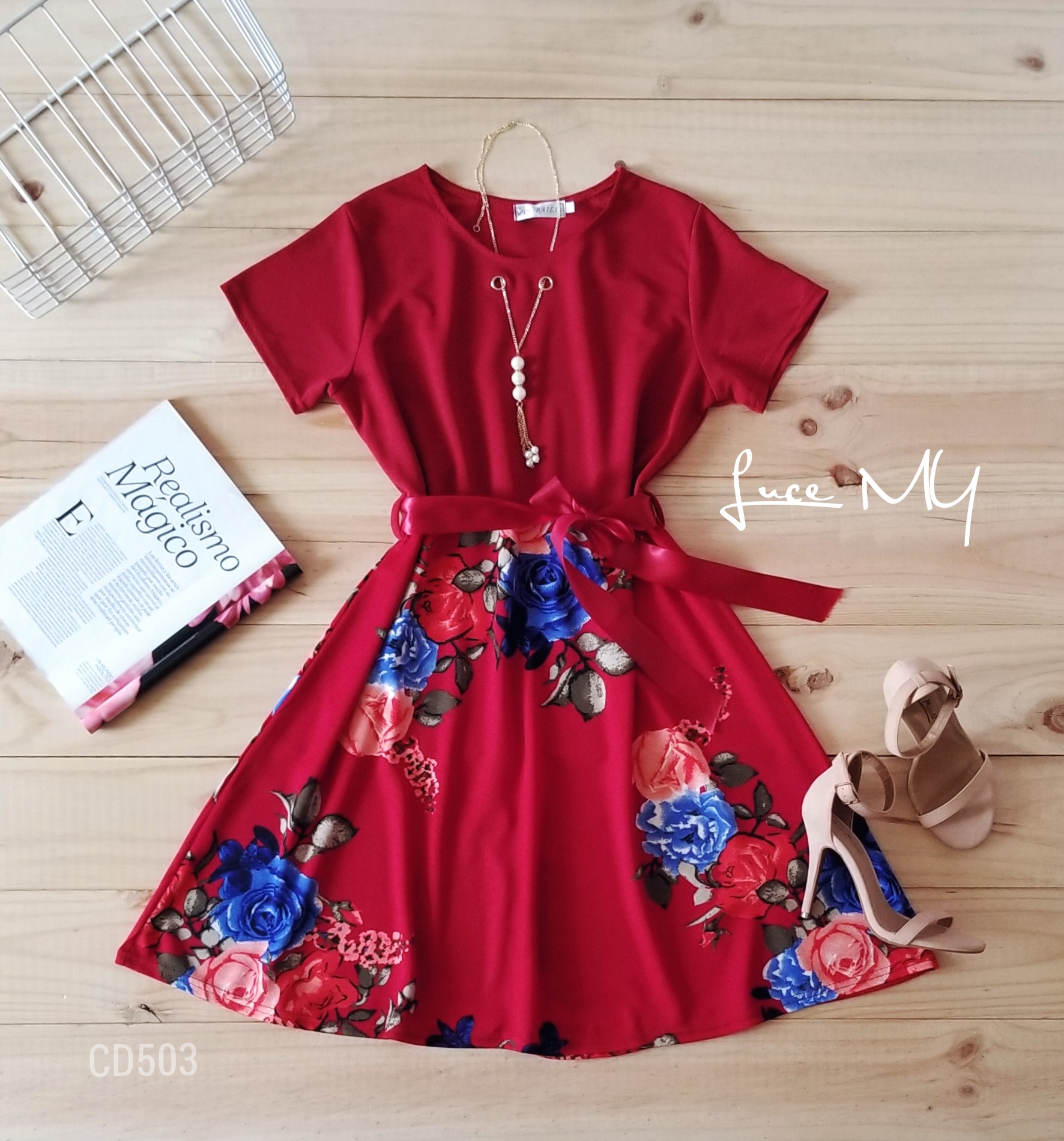 Descripción: Vestido evasé, cuello redondo, manga corta, estampado de rosas en la parte de abajo, material 85% algodón y 15% poliéster Promoción Si llevas dos vestidos por Q185.00