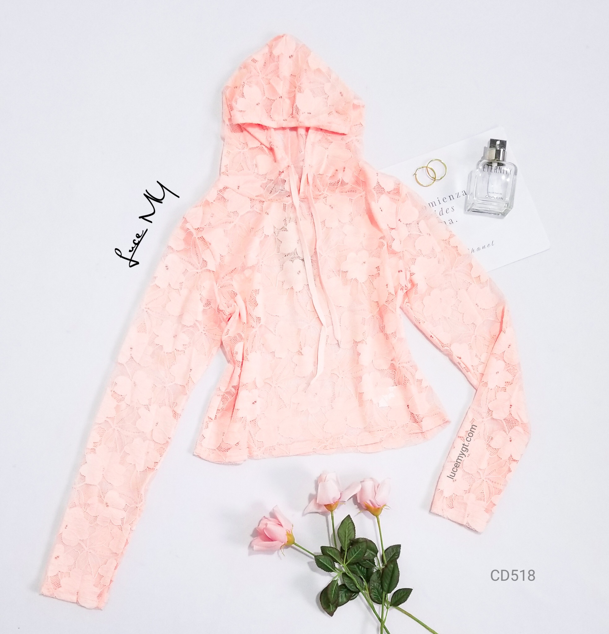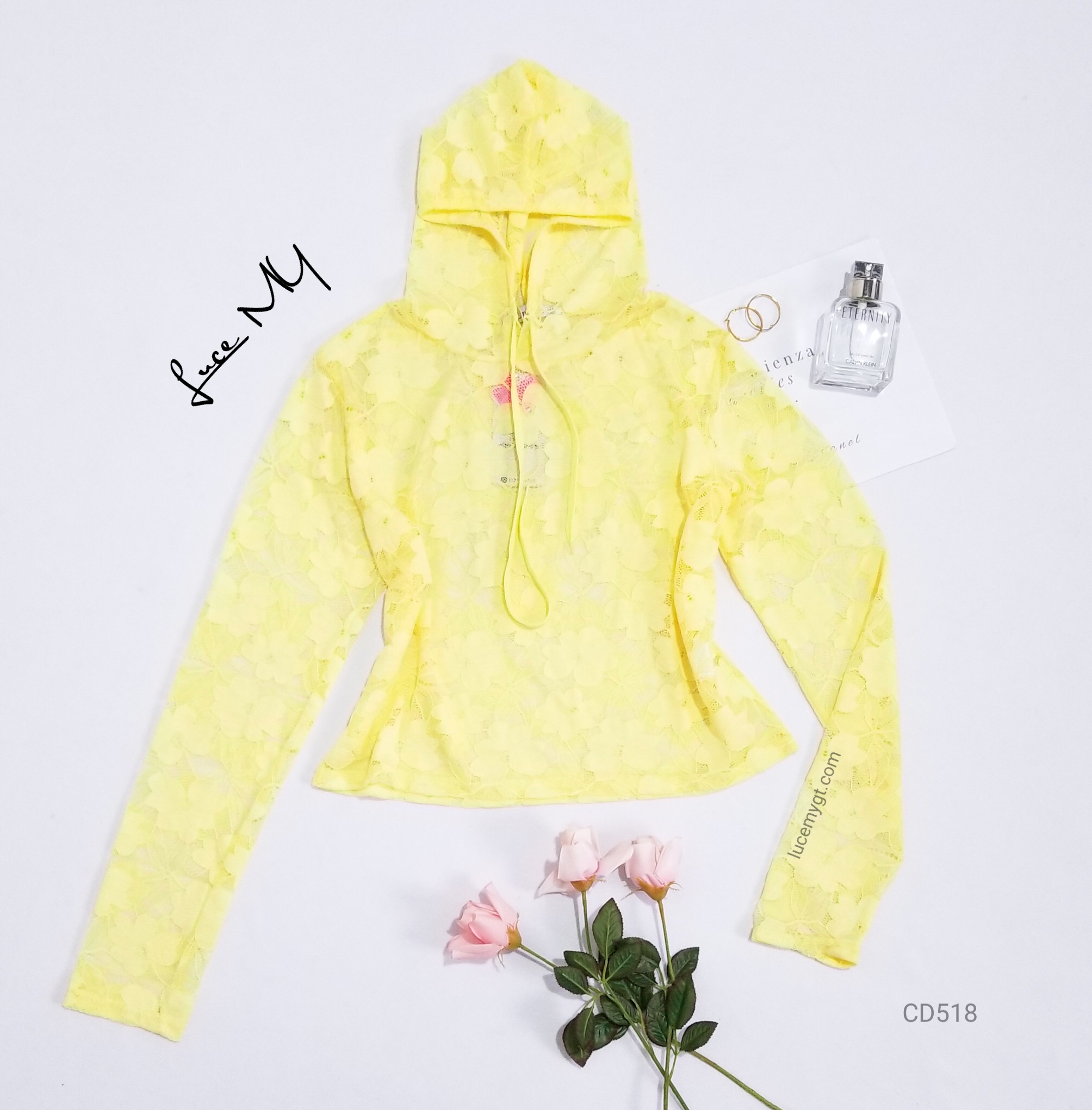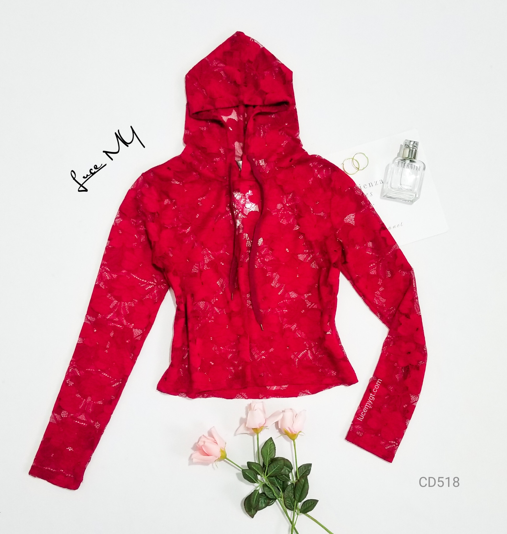 Descripción: Blusa con Capucha de encanje, agujeta ajustable, manga larga, material 65% poliéster y 35% algodón