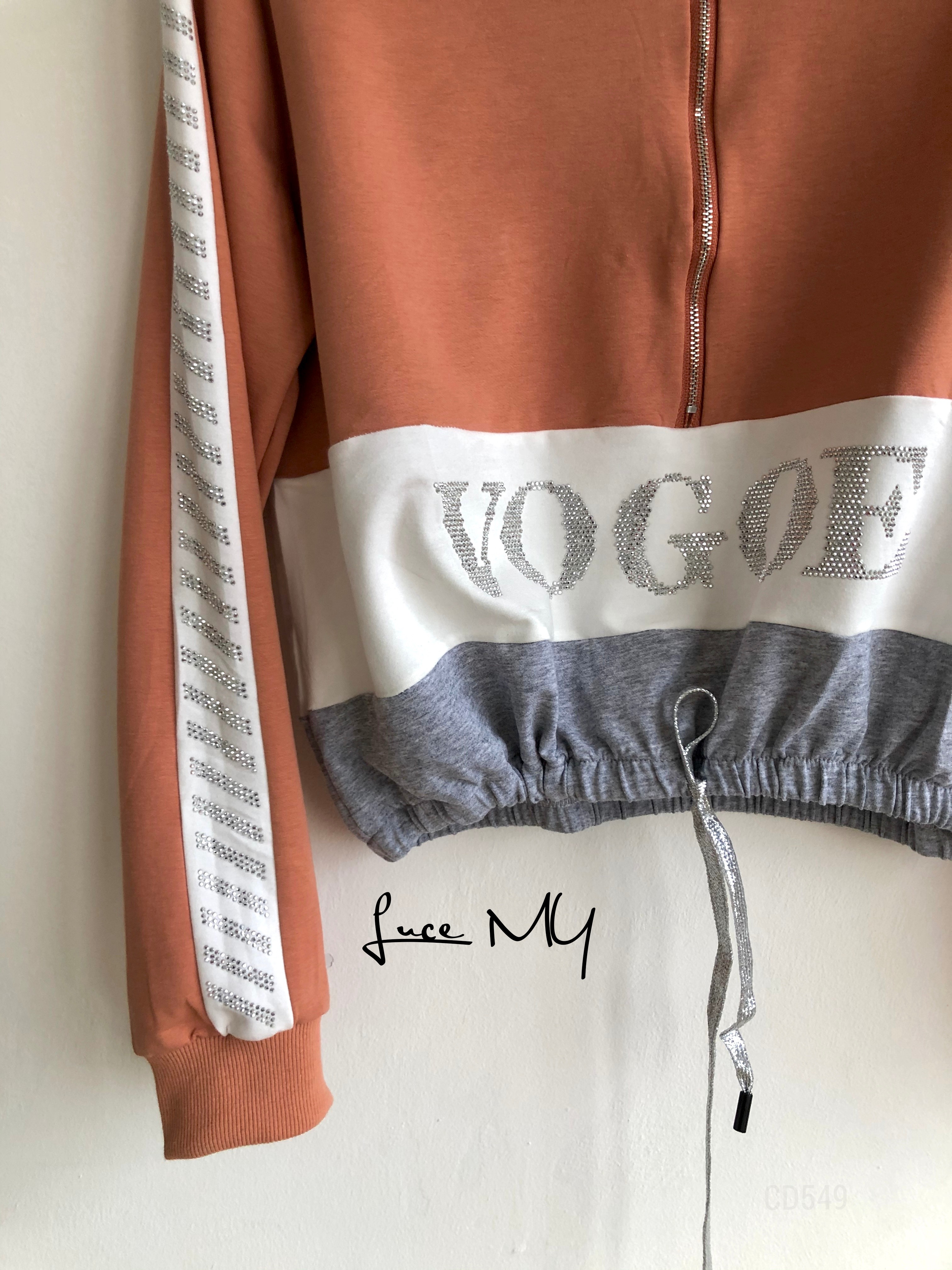 Descripción: Pullover Vogoe, manga larga hombros caído, cuello medio alto zipper en la parte de enfrente, cinta ajustable en la parte de abajo.