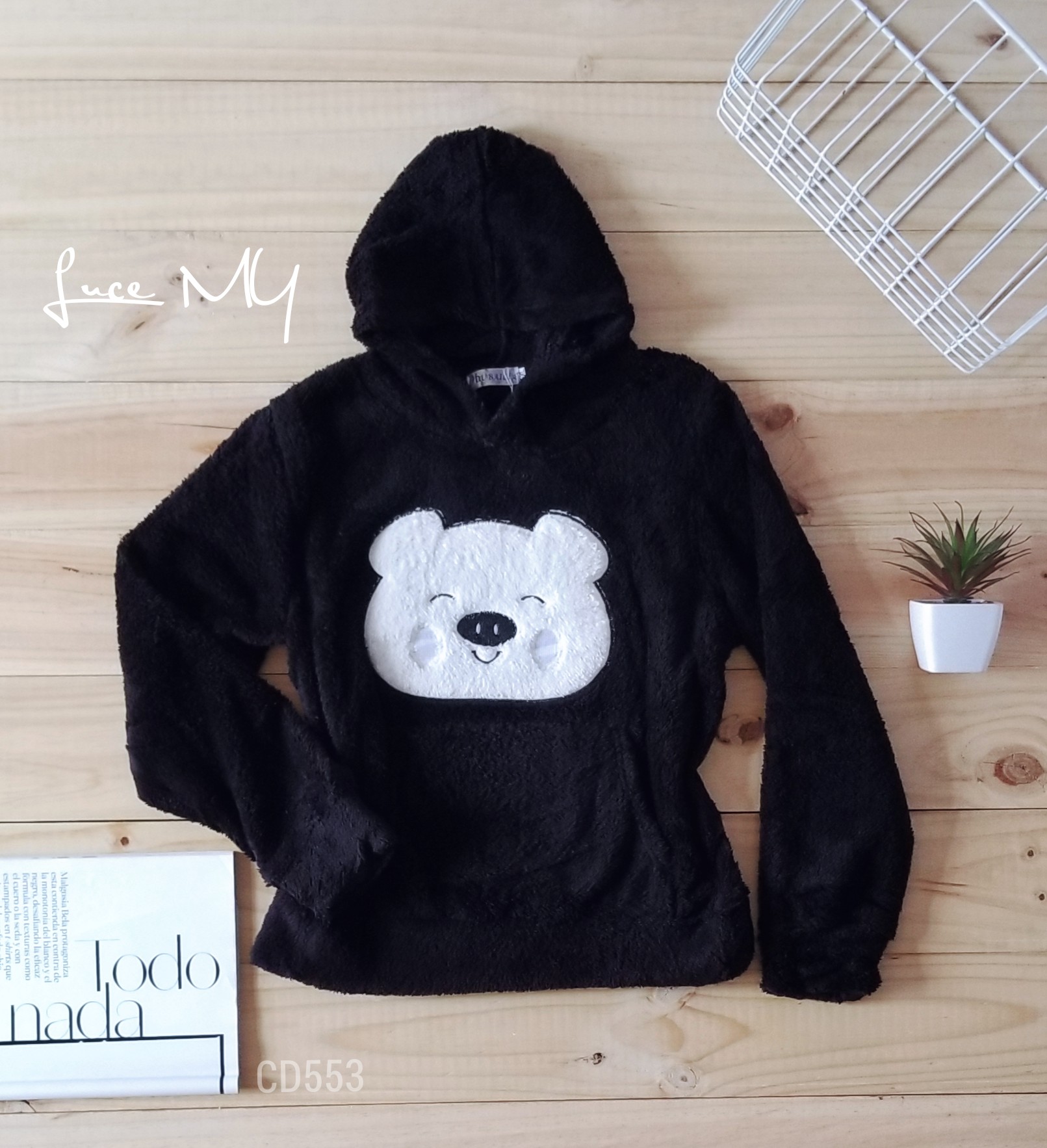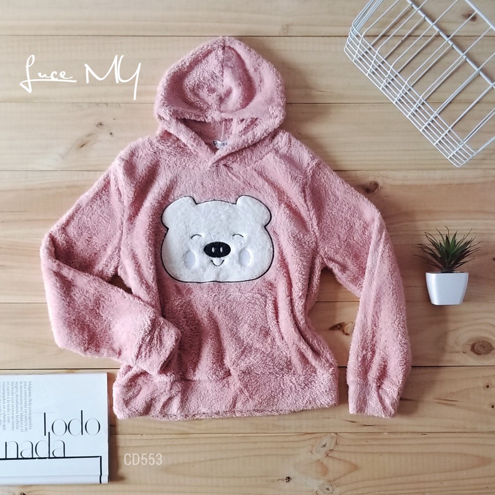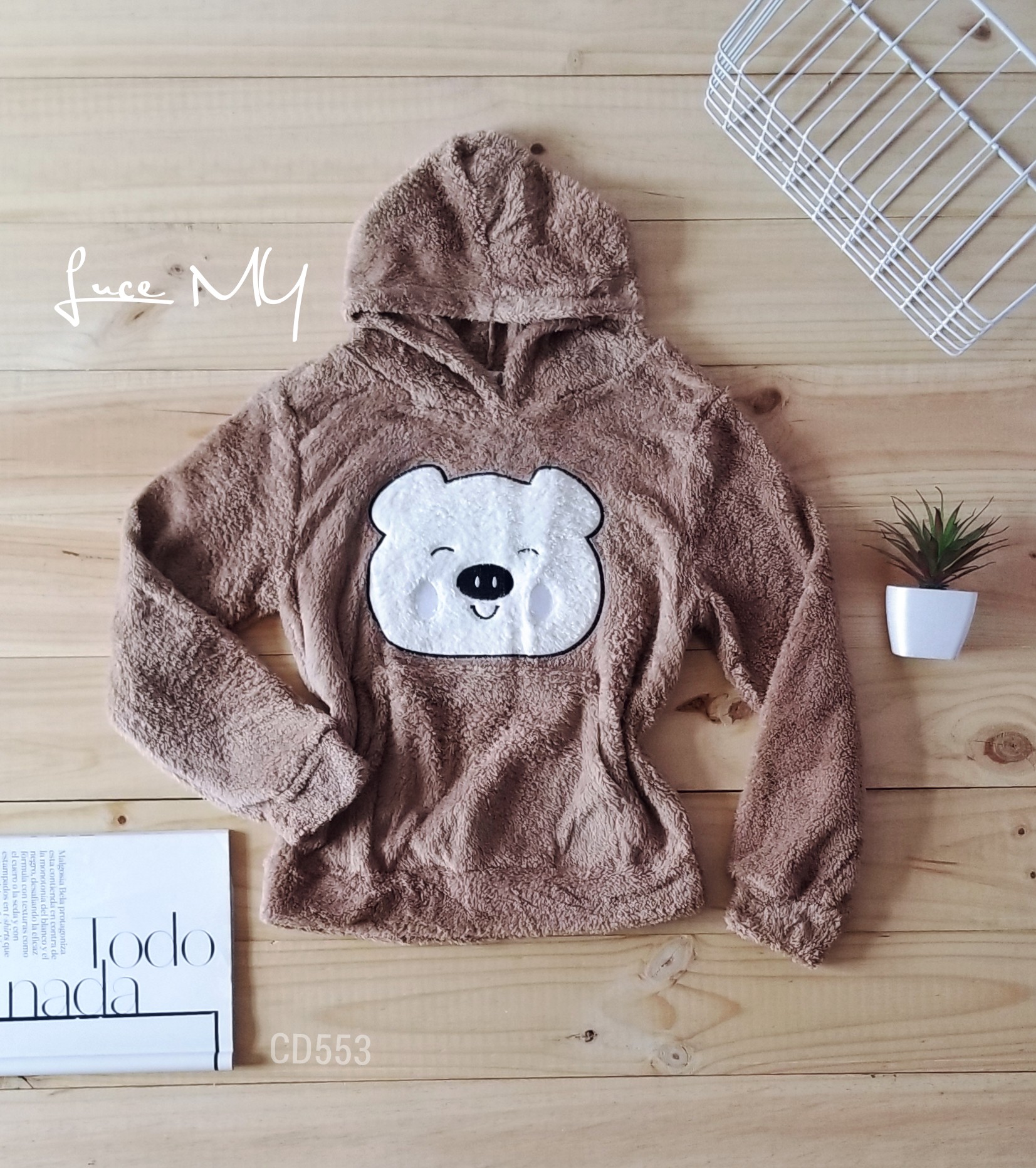 Descripción: Suéter de Oso, tiene capucha, manga larga, bolsillo canguro.