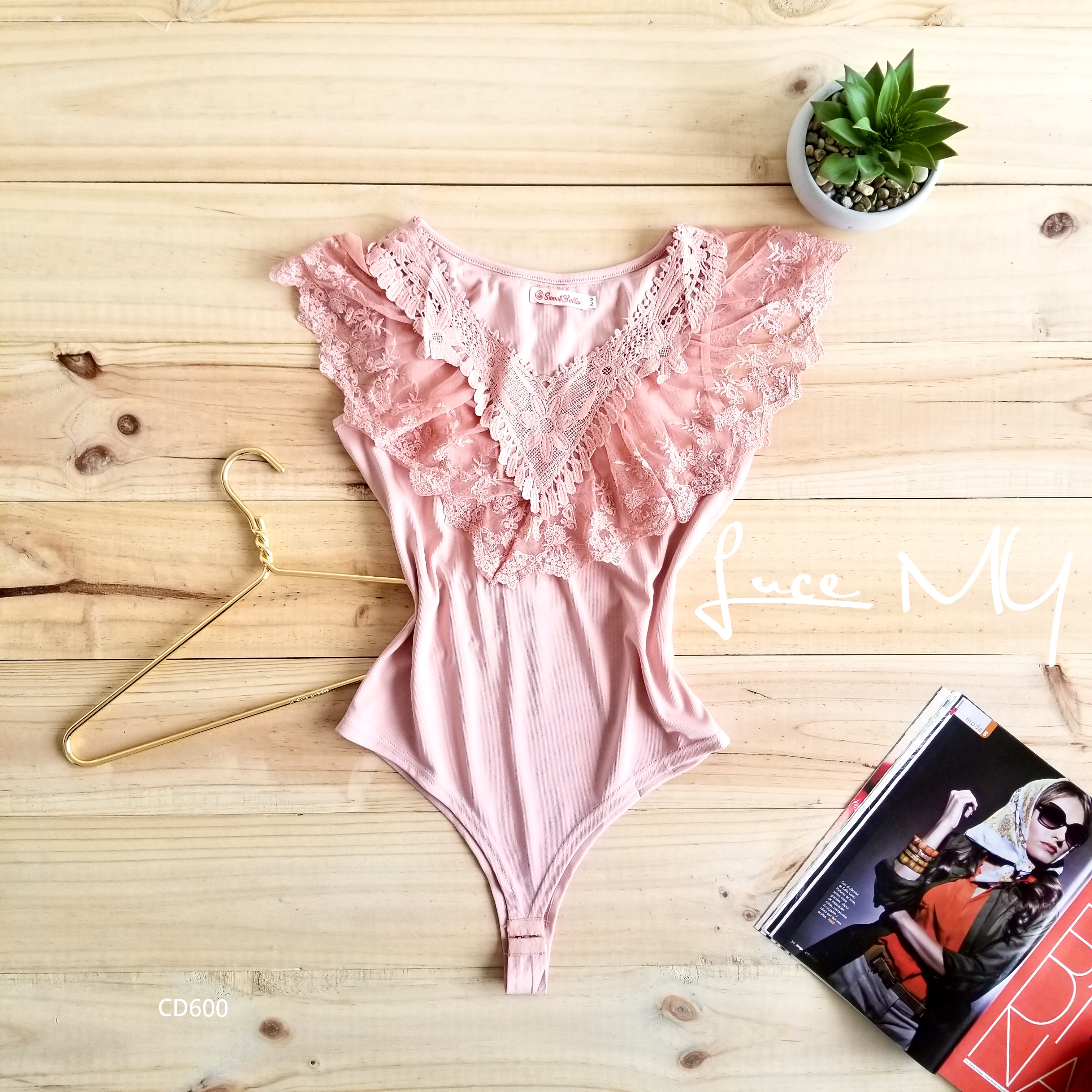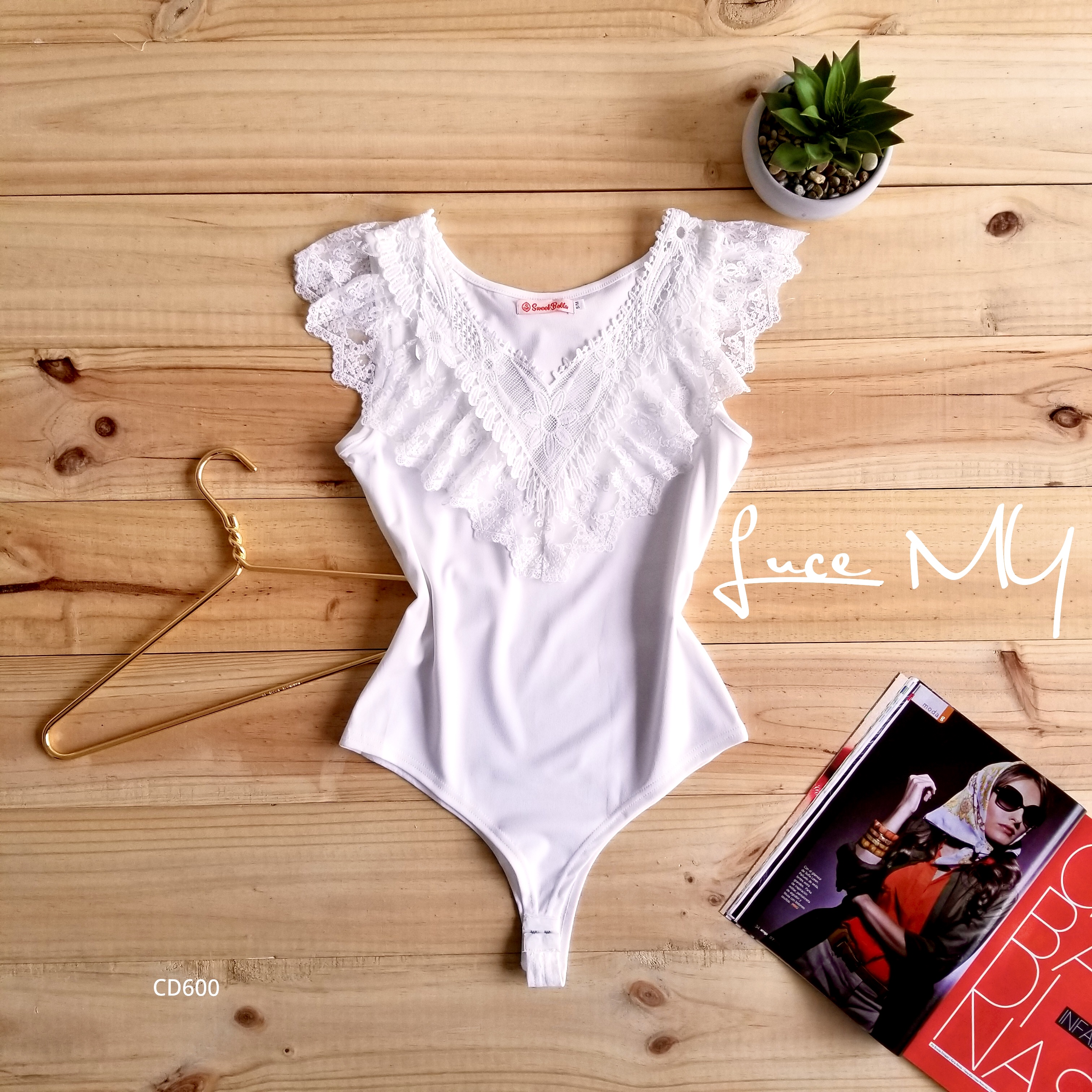 Descripción: Body cuello V con vuelitos de encaje, sin mangas, broches en la parte de abajo, material 92% poliéster y 8% elastano. Promoción Si llevas dos bodis a solo por Q185.00