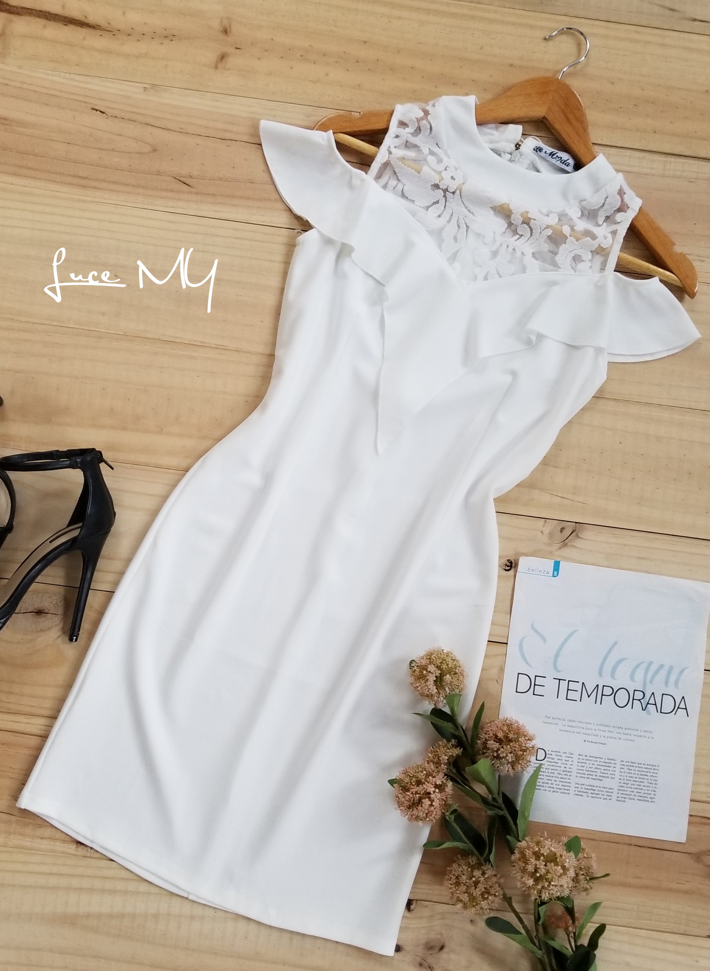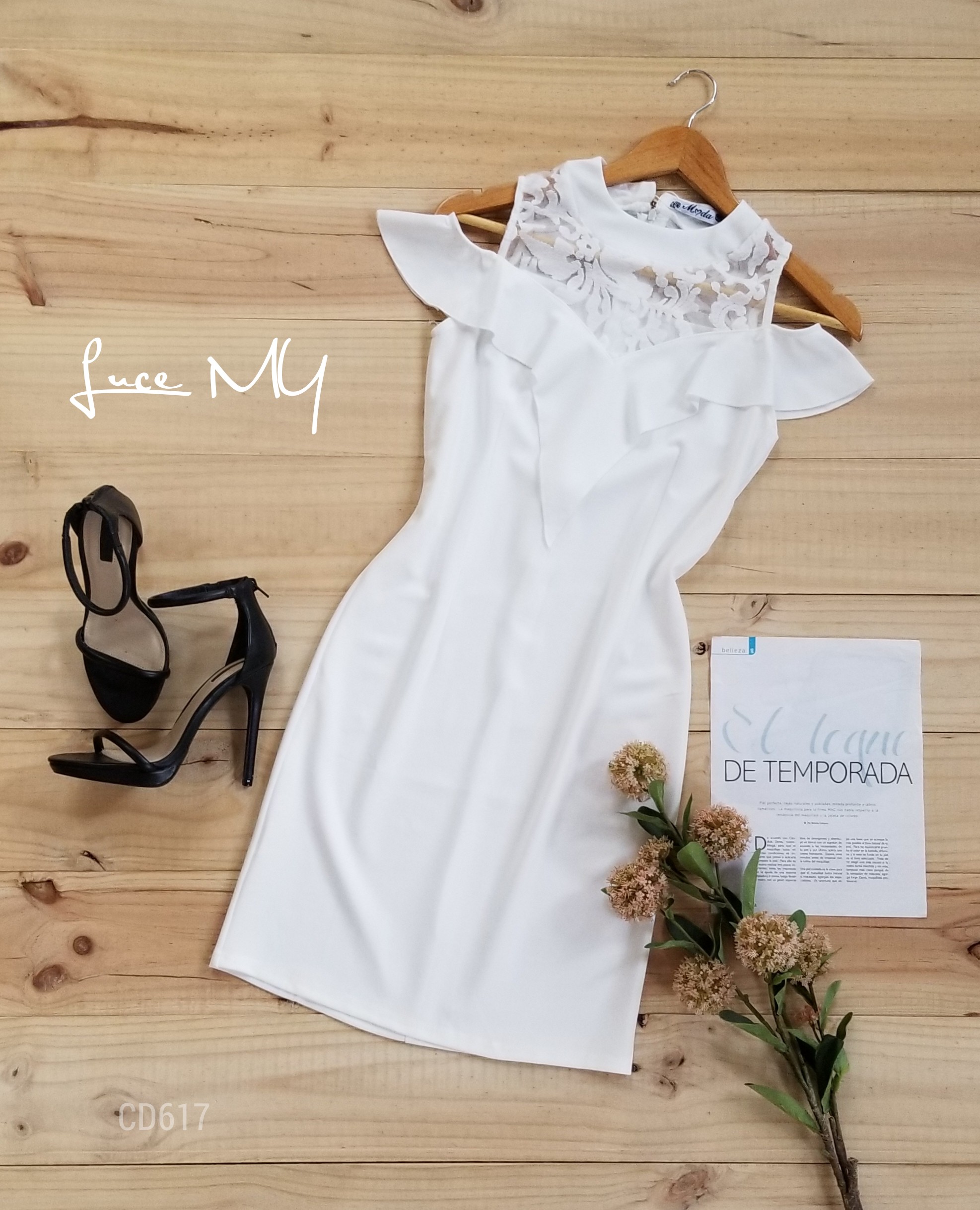 Descripción: Vestido Hombros descubiertos, cuello redondo, encaje en la parte de arriba vuelito tipo v, sin mangas, cremallera en la parte de atrás y un botón en la parte de arriba de atrás, material 95% poliéster y 5% elastano. Promoción si llevas dos vestido a solo por Q185.00