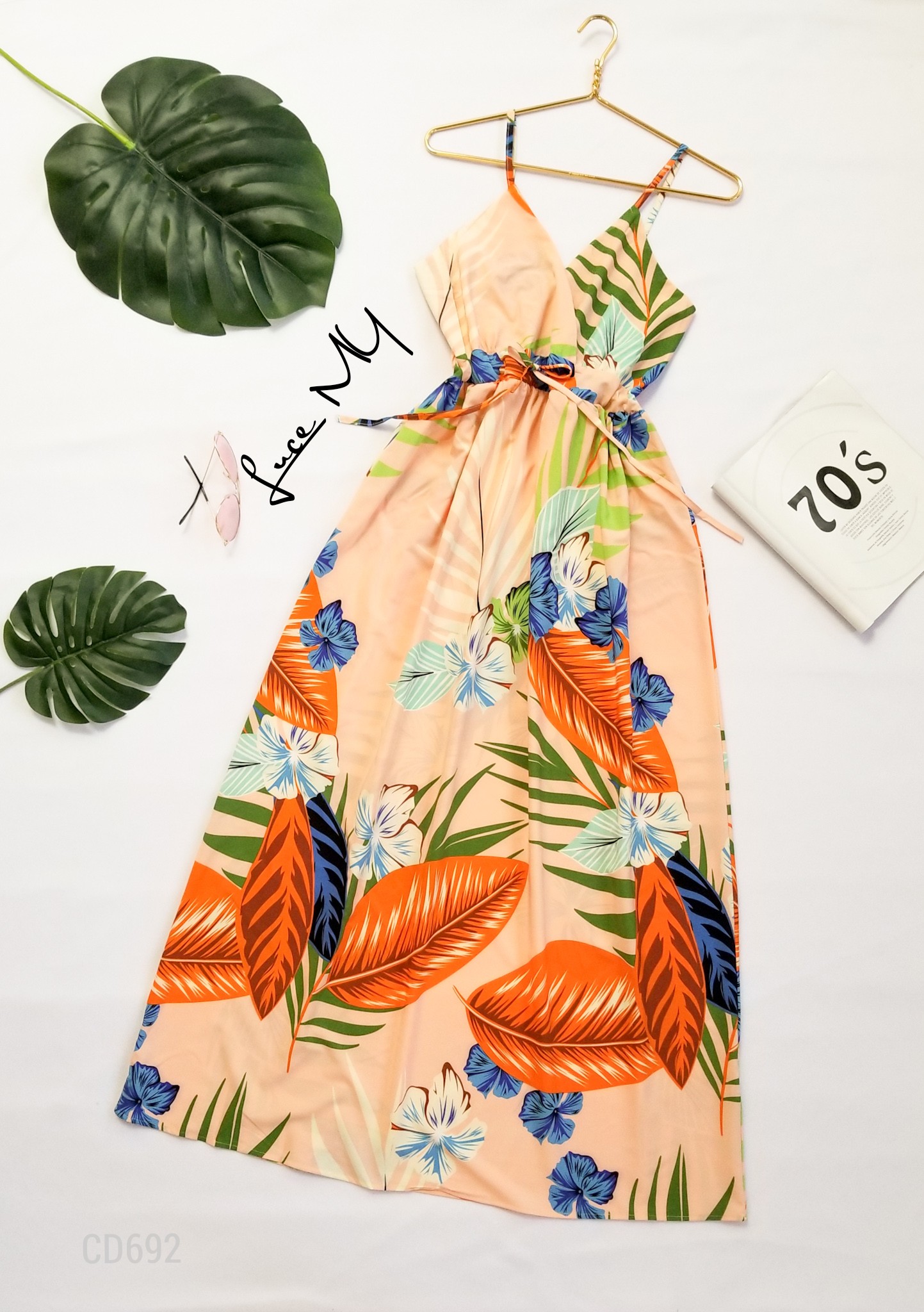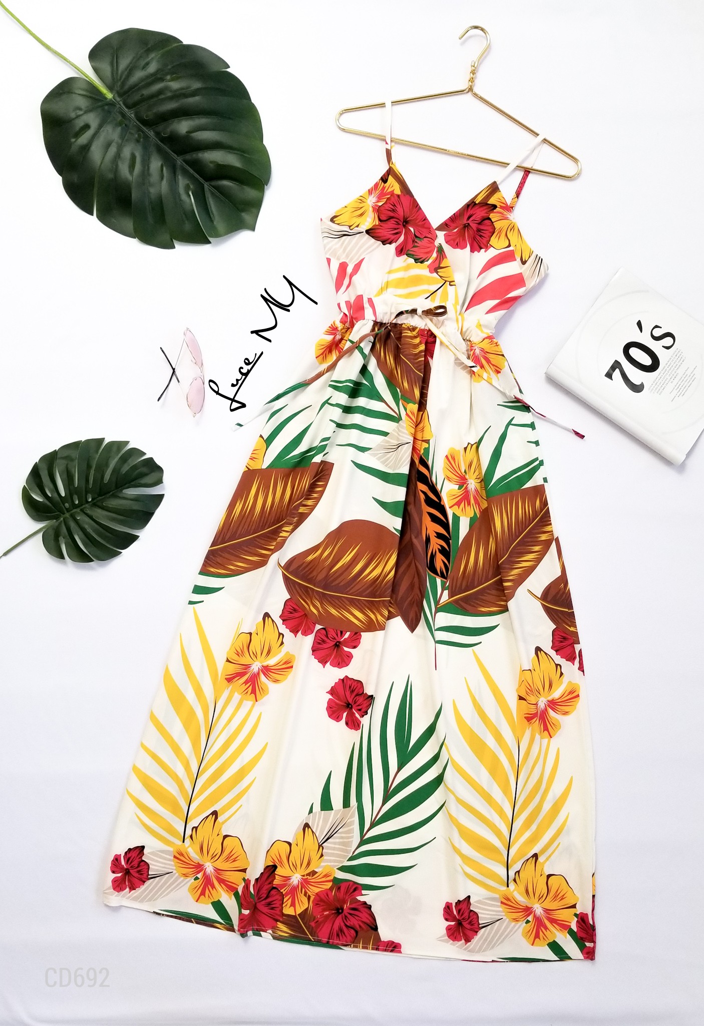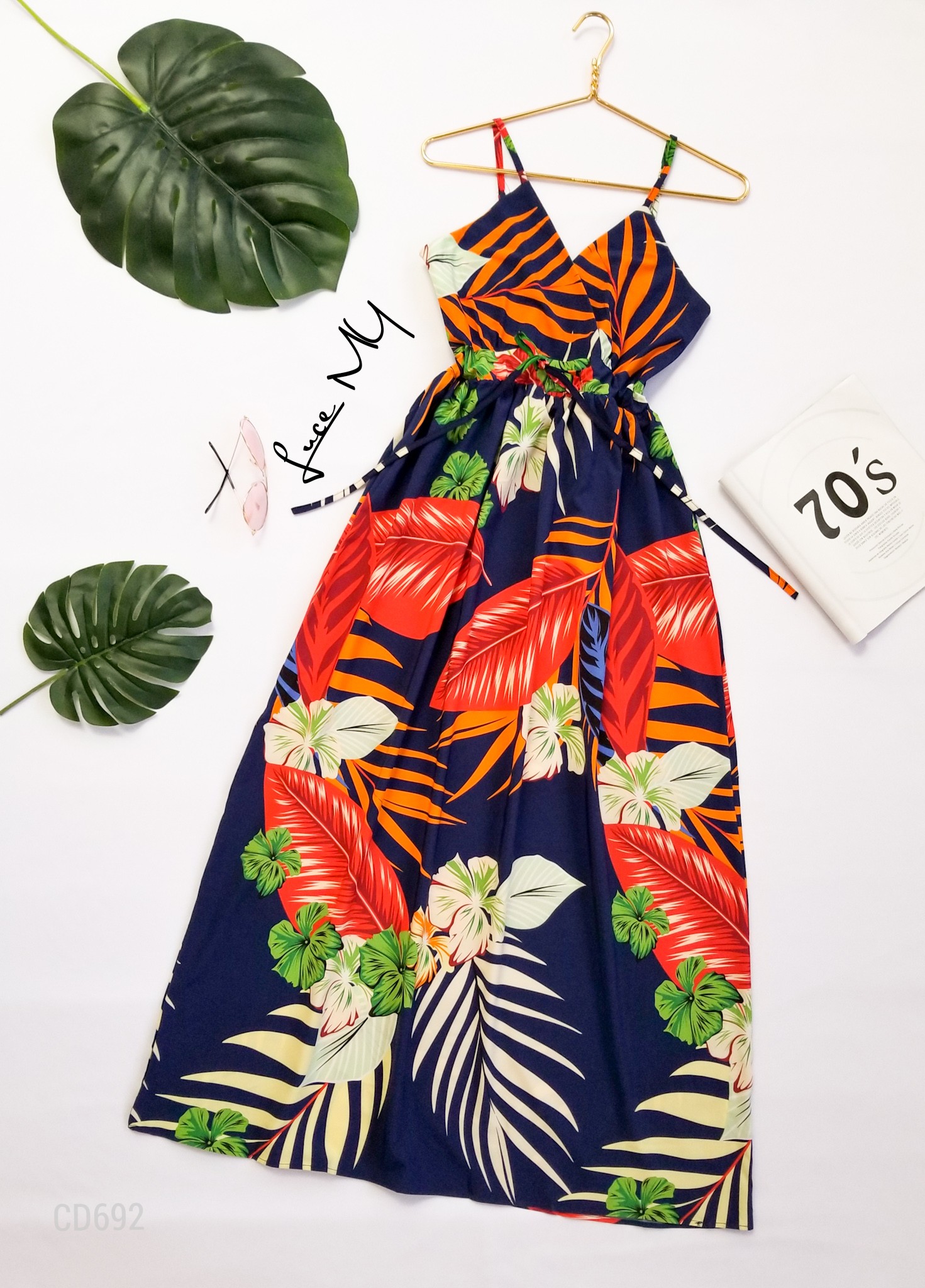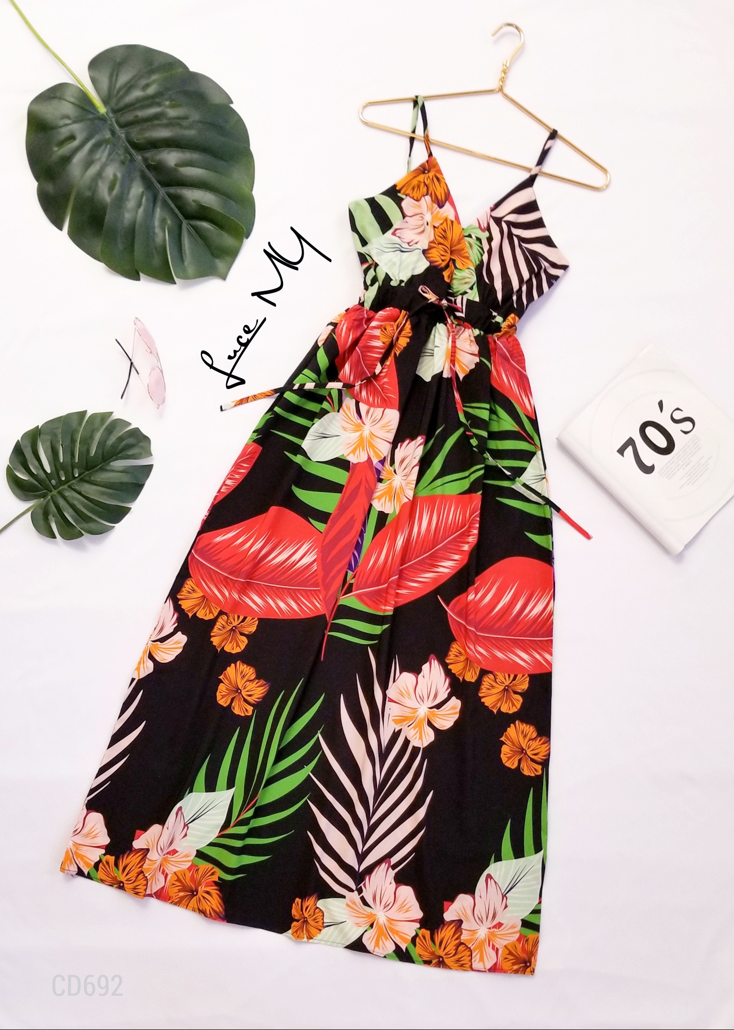 Descripción: Vestidos Maxi, cuello V, tirantes ajustables, y en la parte de espalda es fruncido y en cintura trae una cinta ajustable, material 95% poliéster 5% elastano. Promoción Si llevas dos vestidos a solo por Q250.00