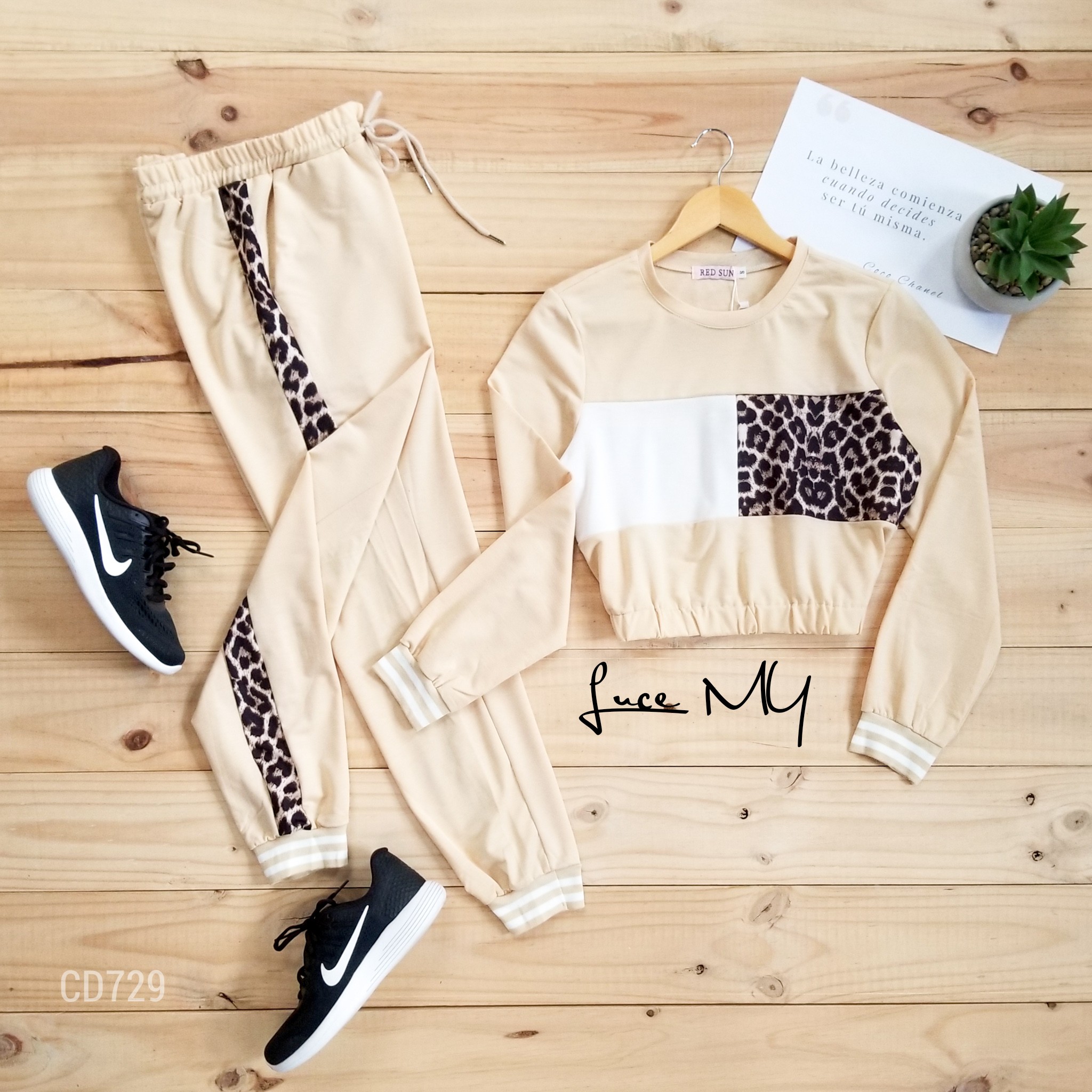 Descripción: Traje deportivo, sudadera cuello redondo, manga larga, con estampado de atigrado, pantalón cintura alta, con elástico en la cintura ajustable, resorte en los tobillos. Promoción Si llevas dos con juntos a solo por Q350.00