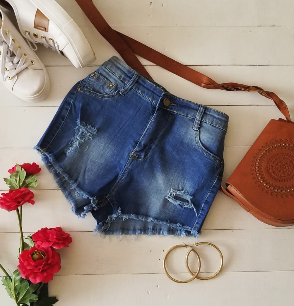 Descripción: Short de mezclilla, rasgado en la parte de enfrente, 2 bolsas adelante y 2 bolsas en la parte de atrás, material 65% algodón y 35% poliéster es strech.