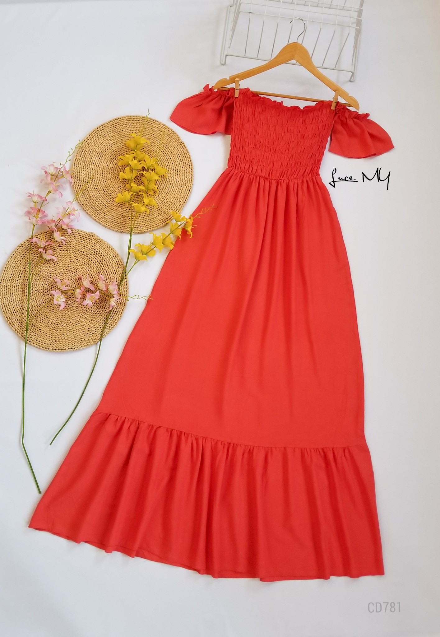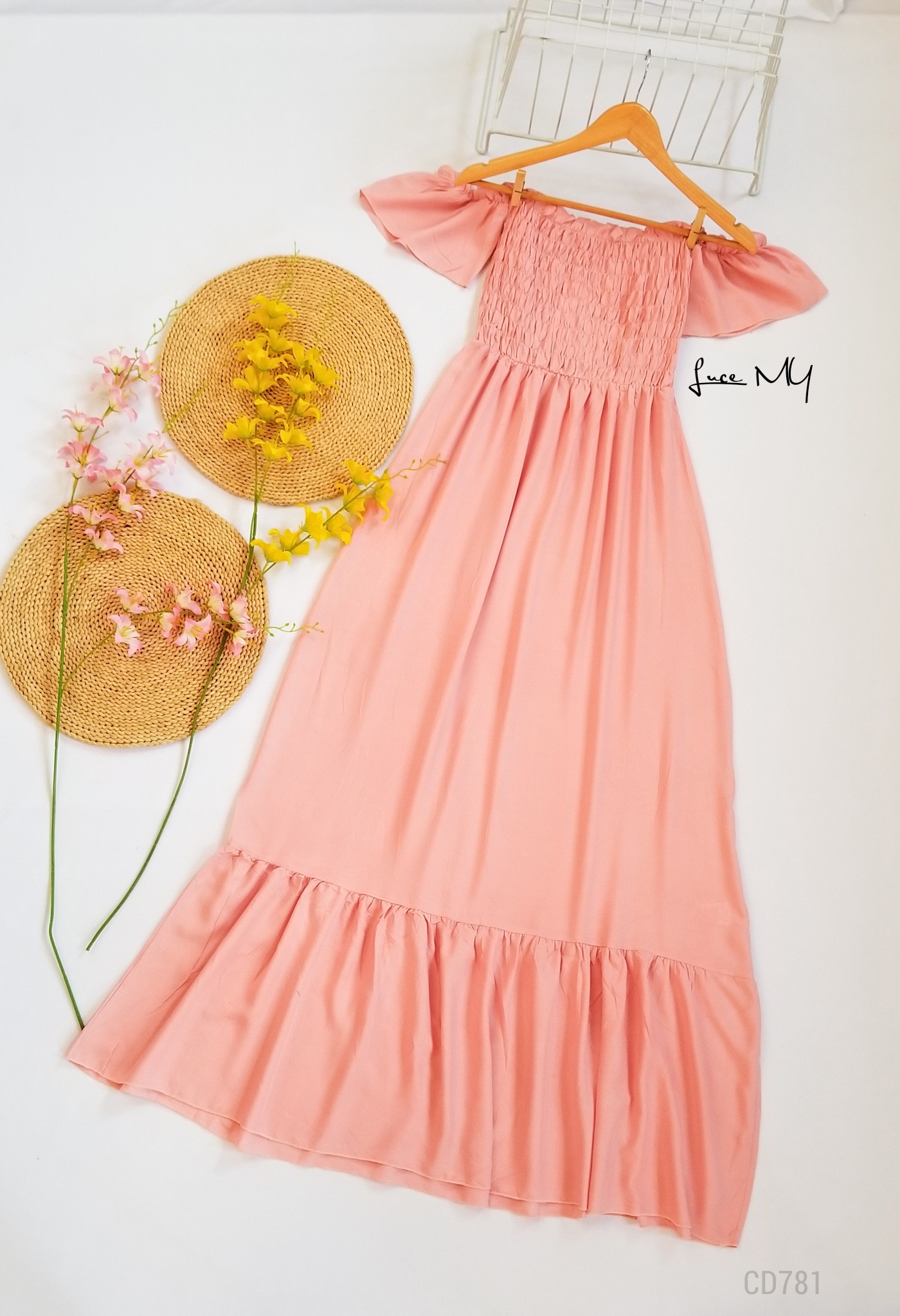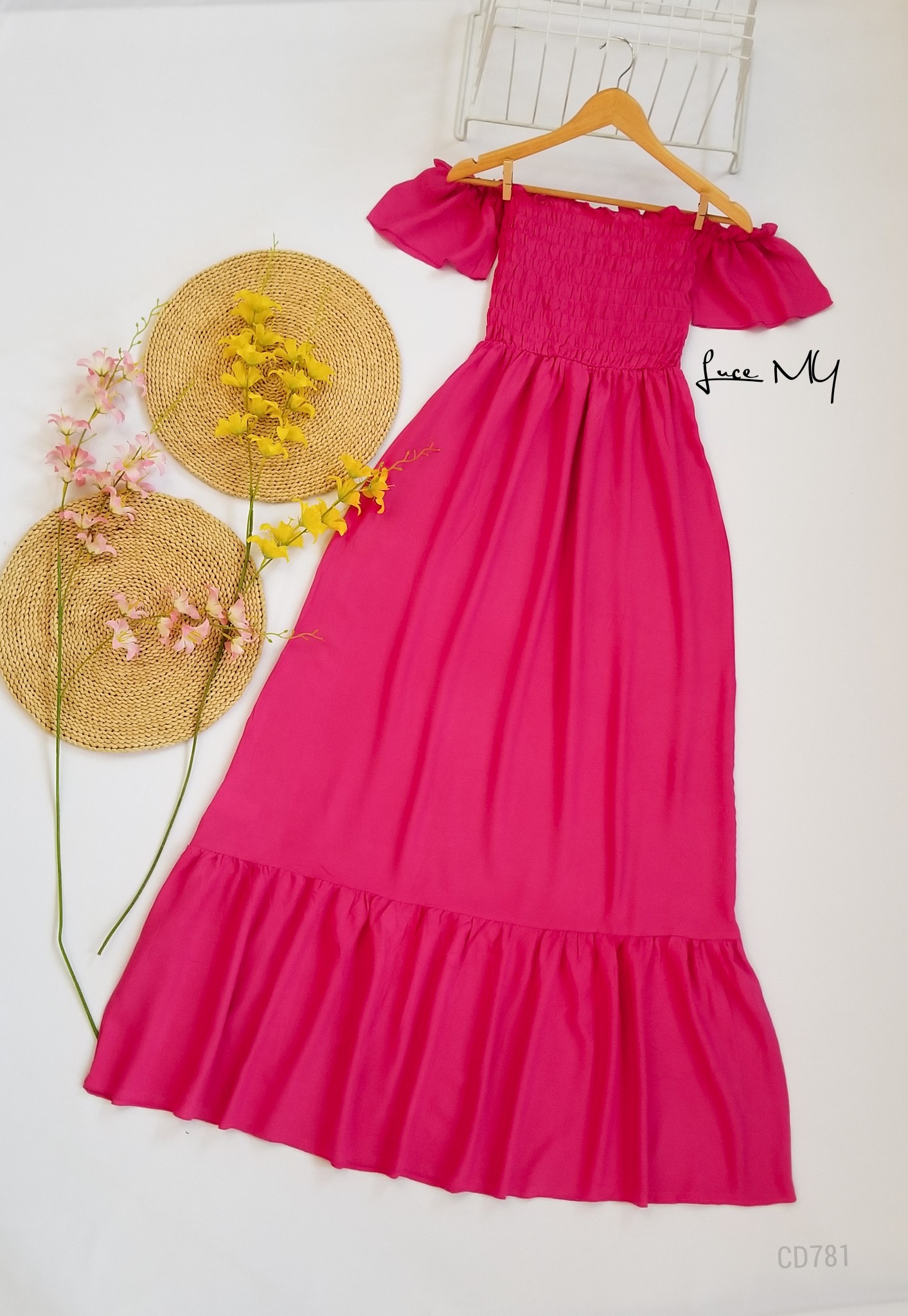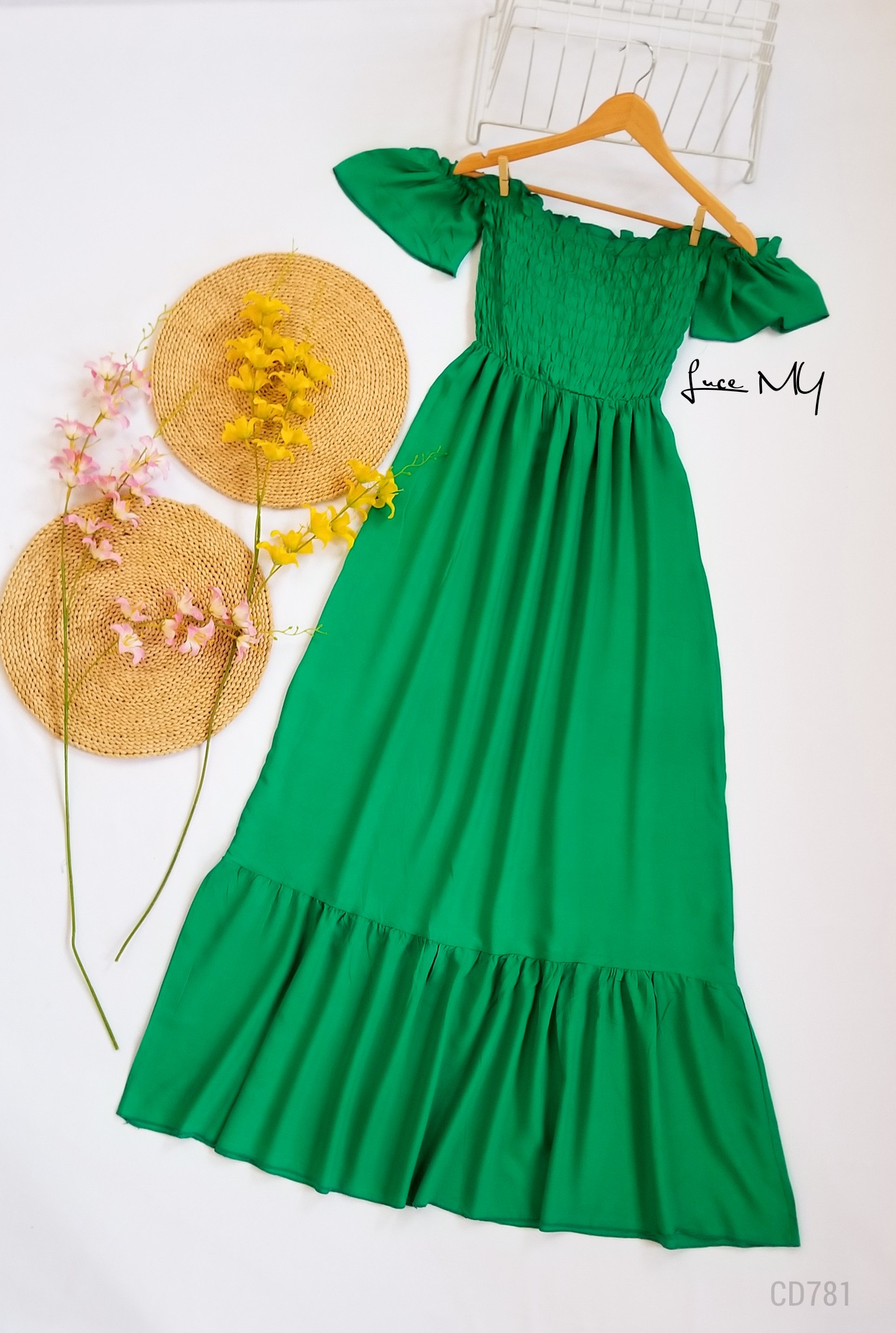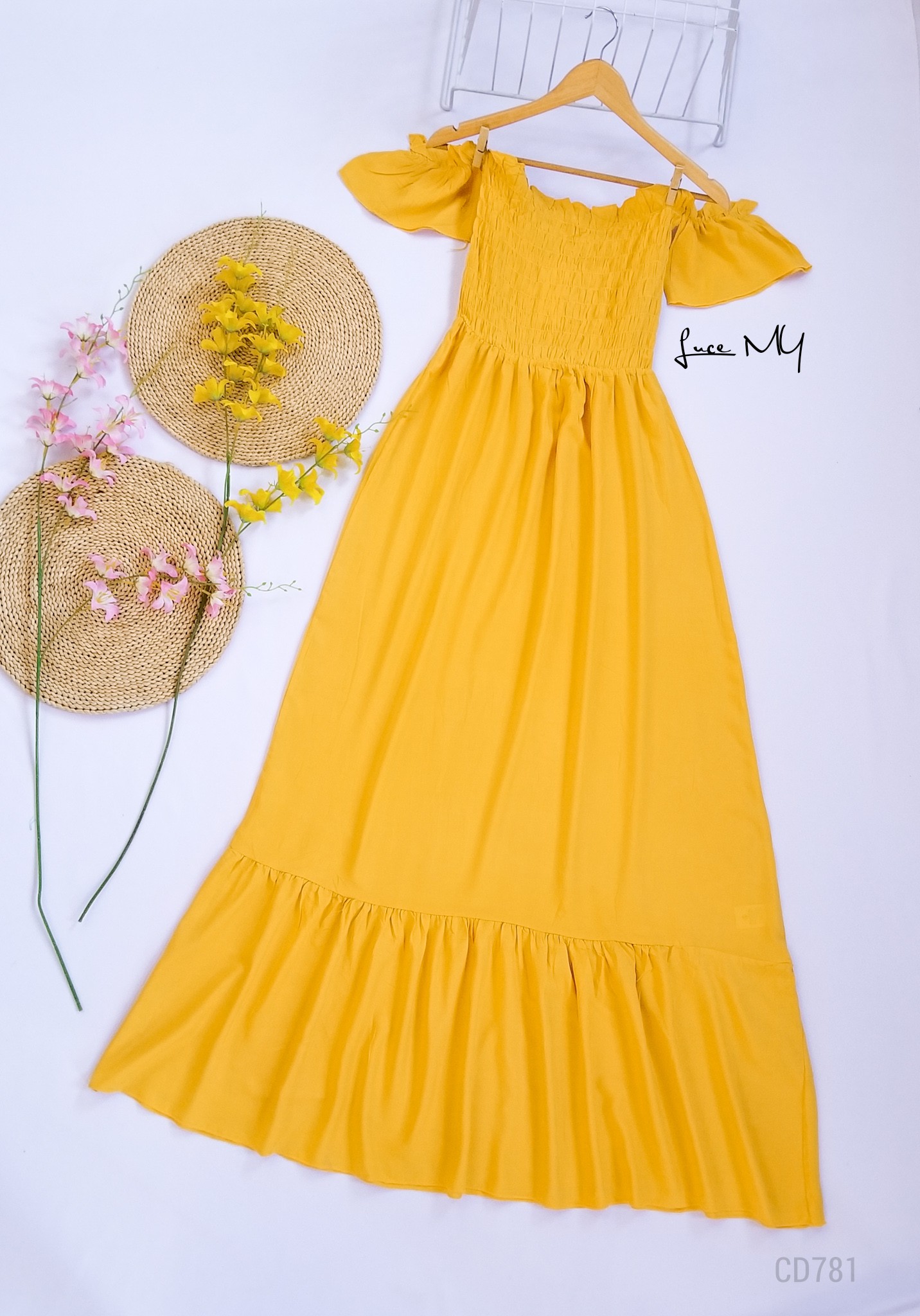 Descripción: Off Shoulder Maxi, manga corta, fruncido en la parte de arriba, material 80% algodón y 20% poliéster. Promoción Si llevas dos vestidos a solo por Q250.00