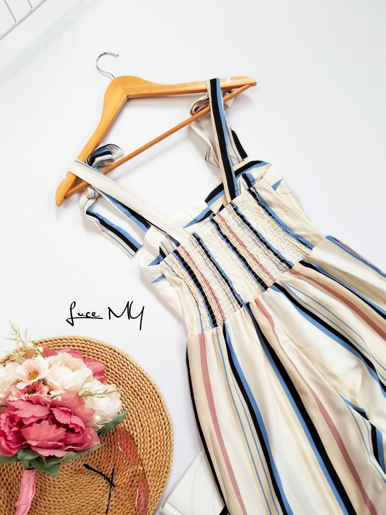 Descripción: Enterizo de Líneas, escote corazón, tirantes ajustables, botones en las parte de enfrente, fruncido en la parte de atrás, material 100% poliéster