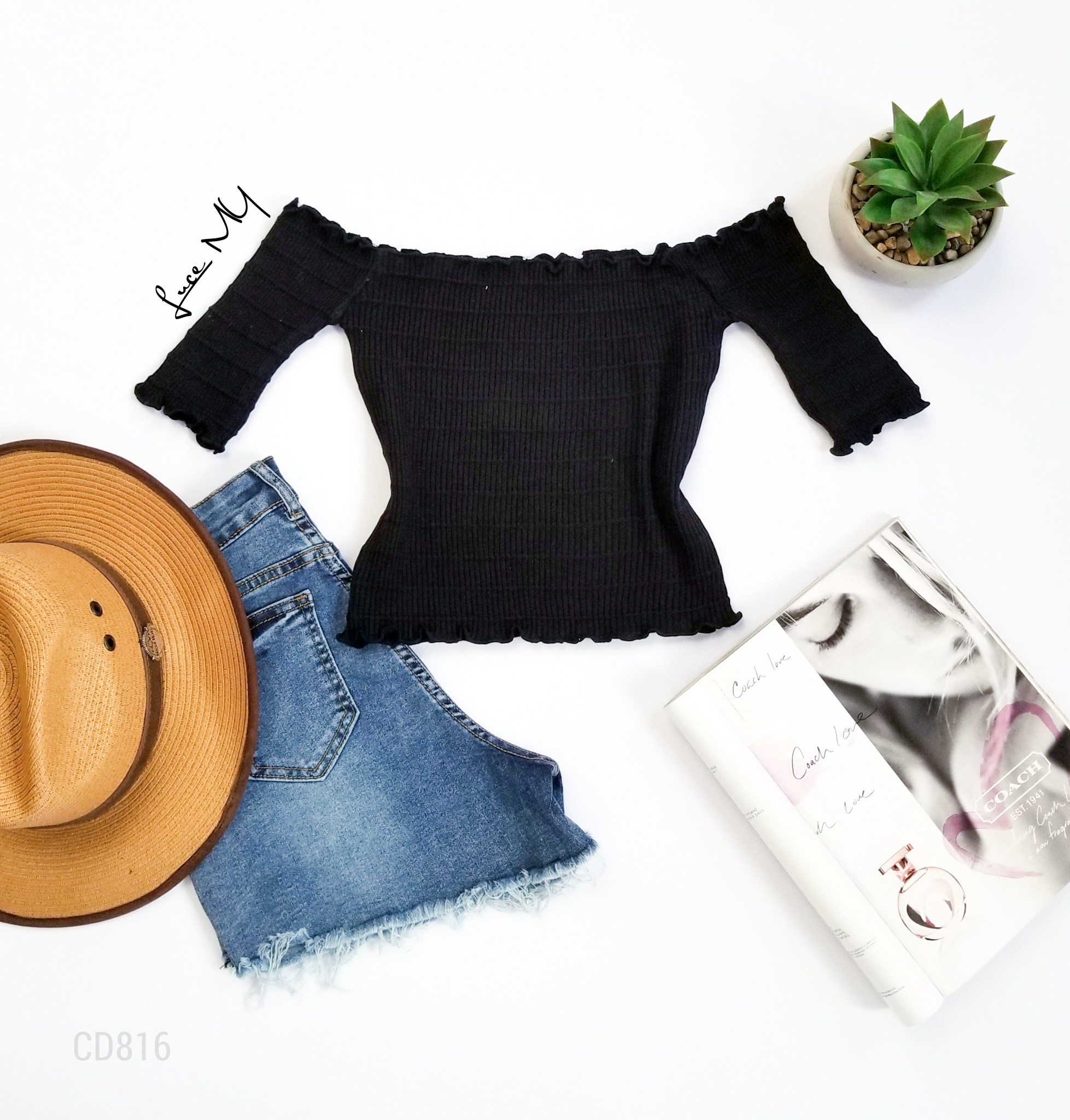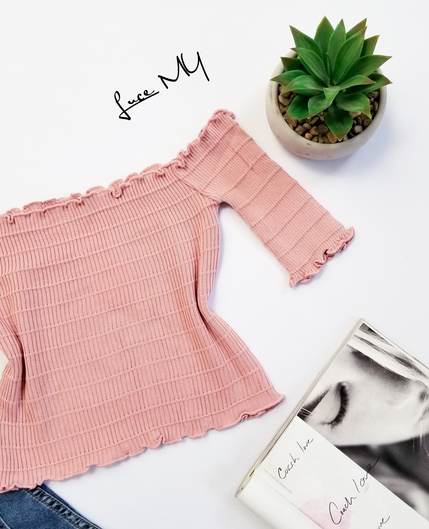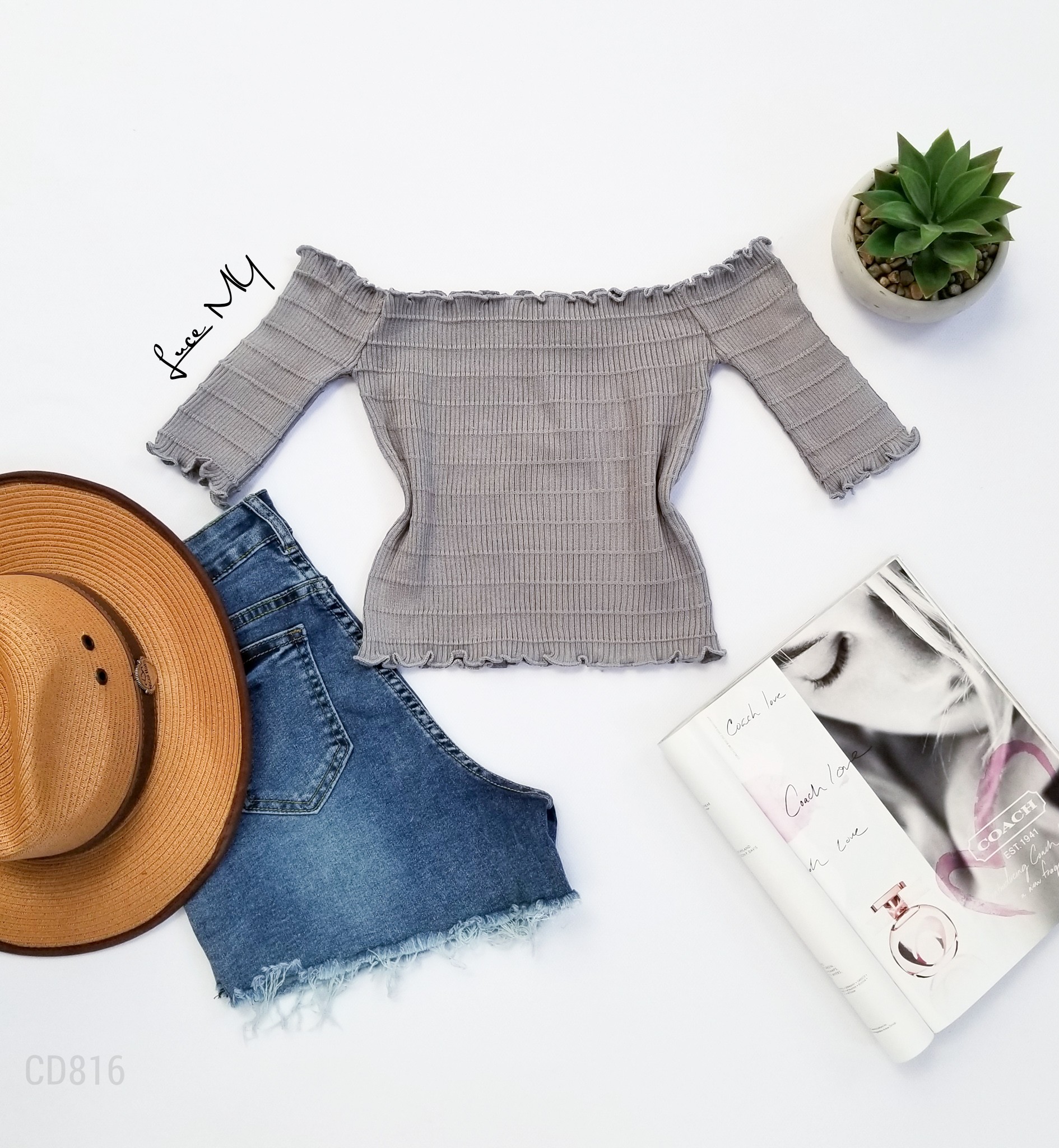 Descripción: Top Crop Off Shoulder, manga tres cuarto, orillas acaracolados, textura de tela acanalado. Promoción si llevas dos blusas a solo por Q135.00