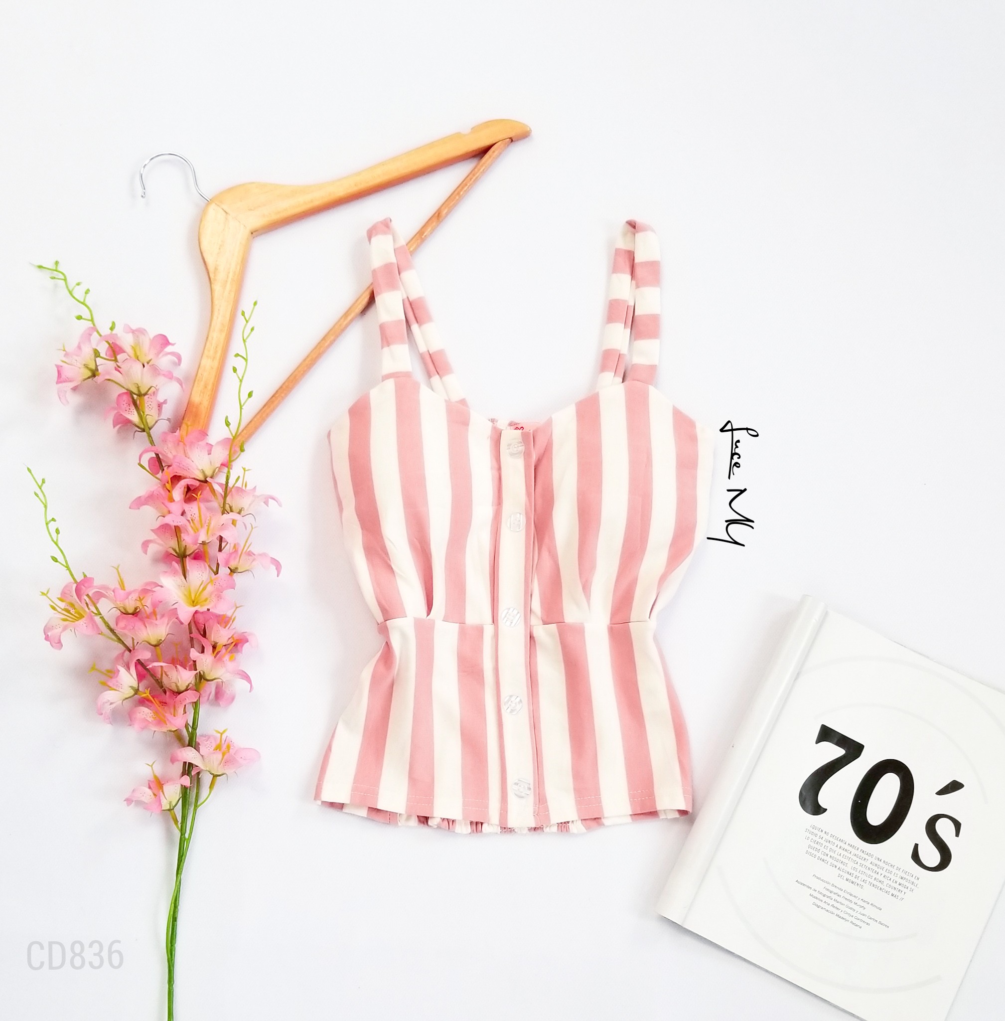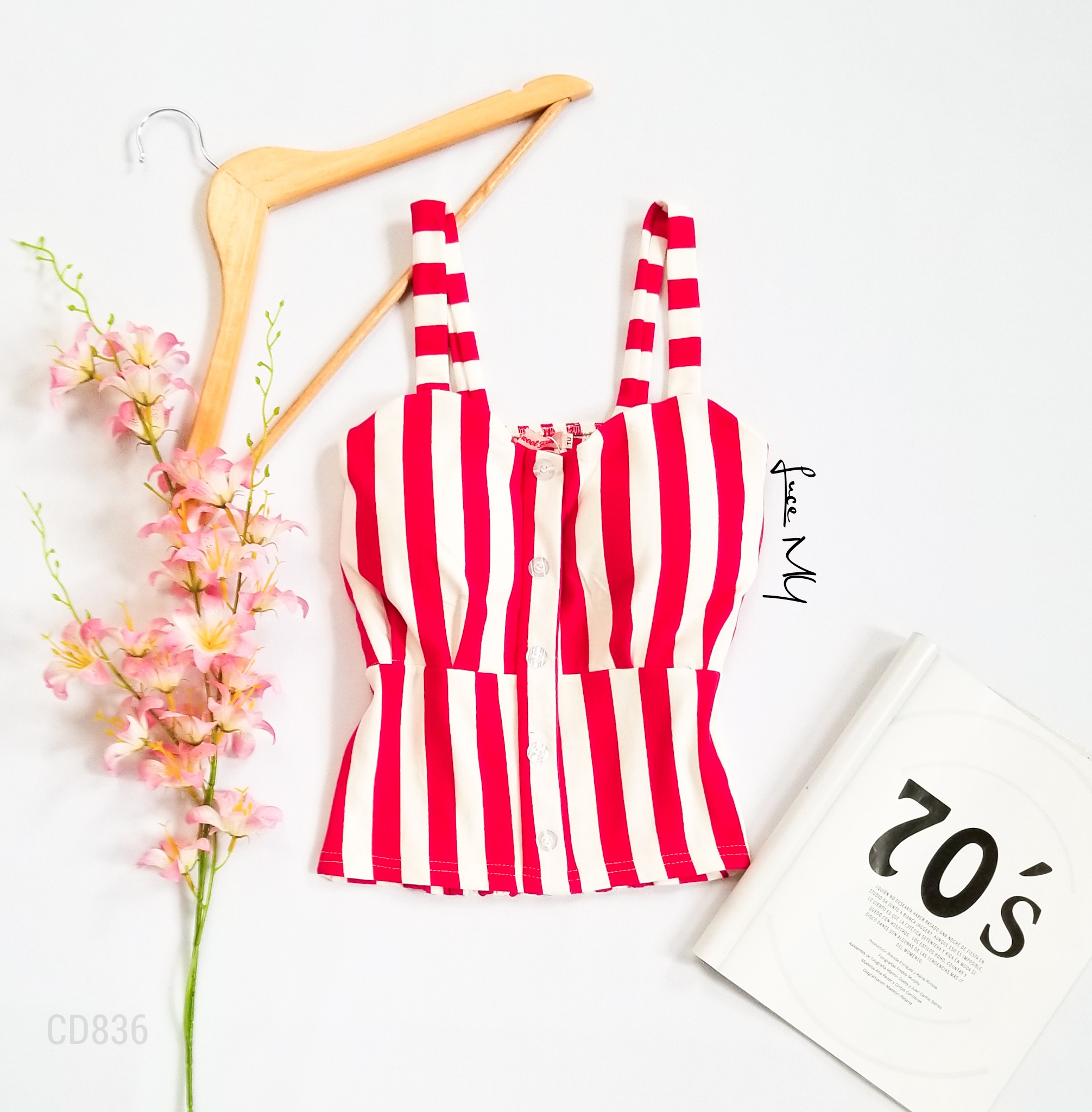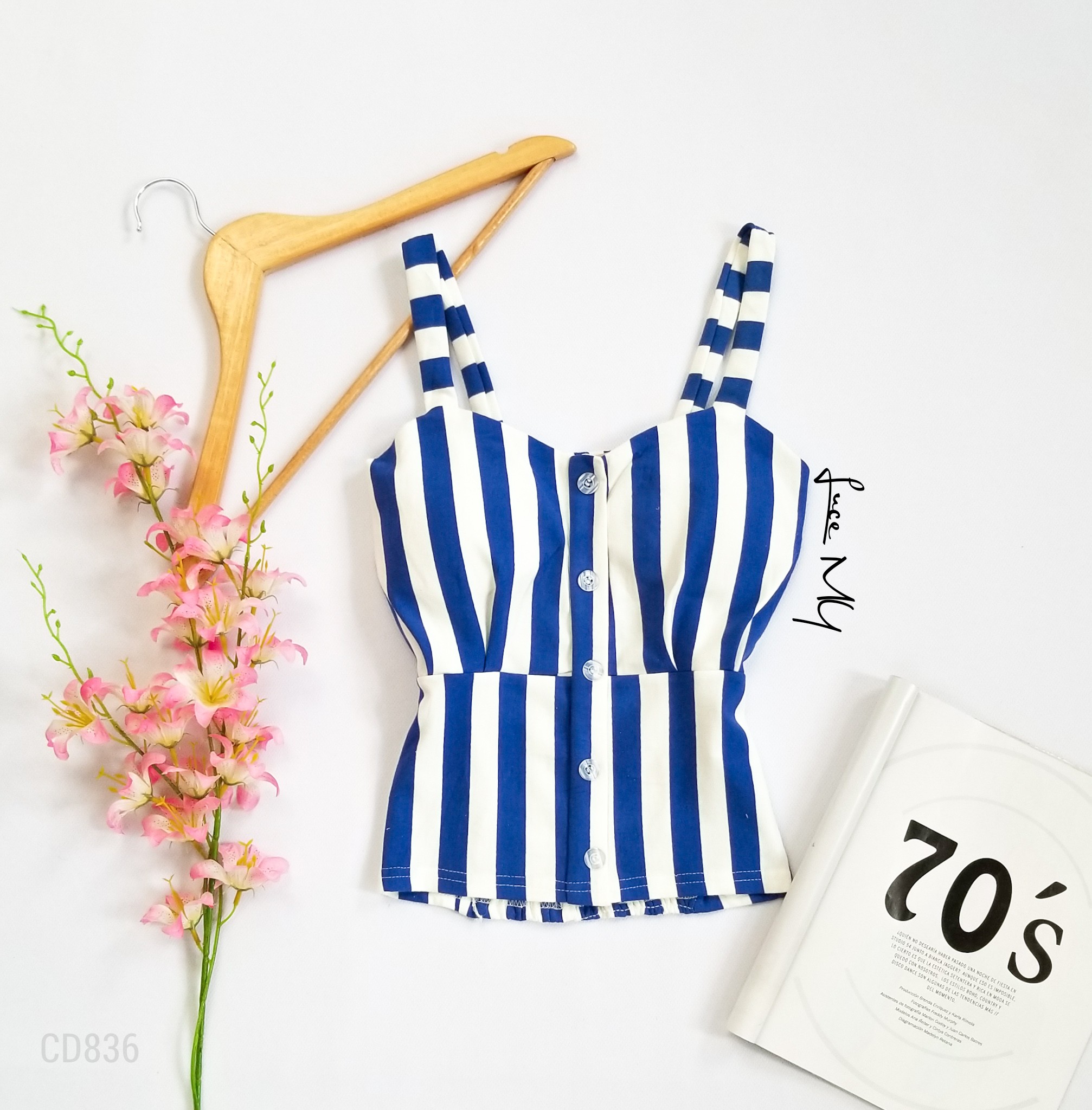 Descripción: Blusa de tirantes, con botones al frente, fruncido en la parte de atrás, material 100% algodón