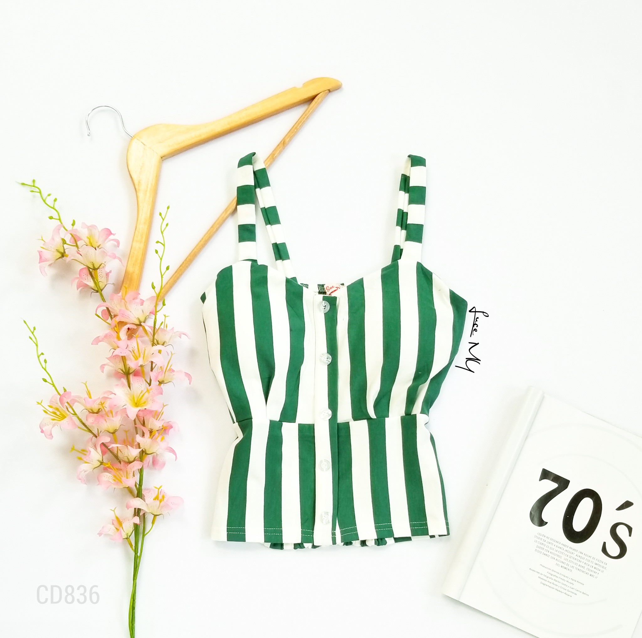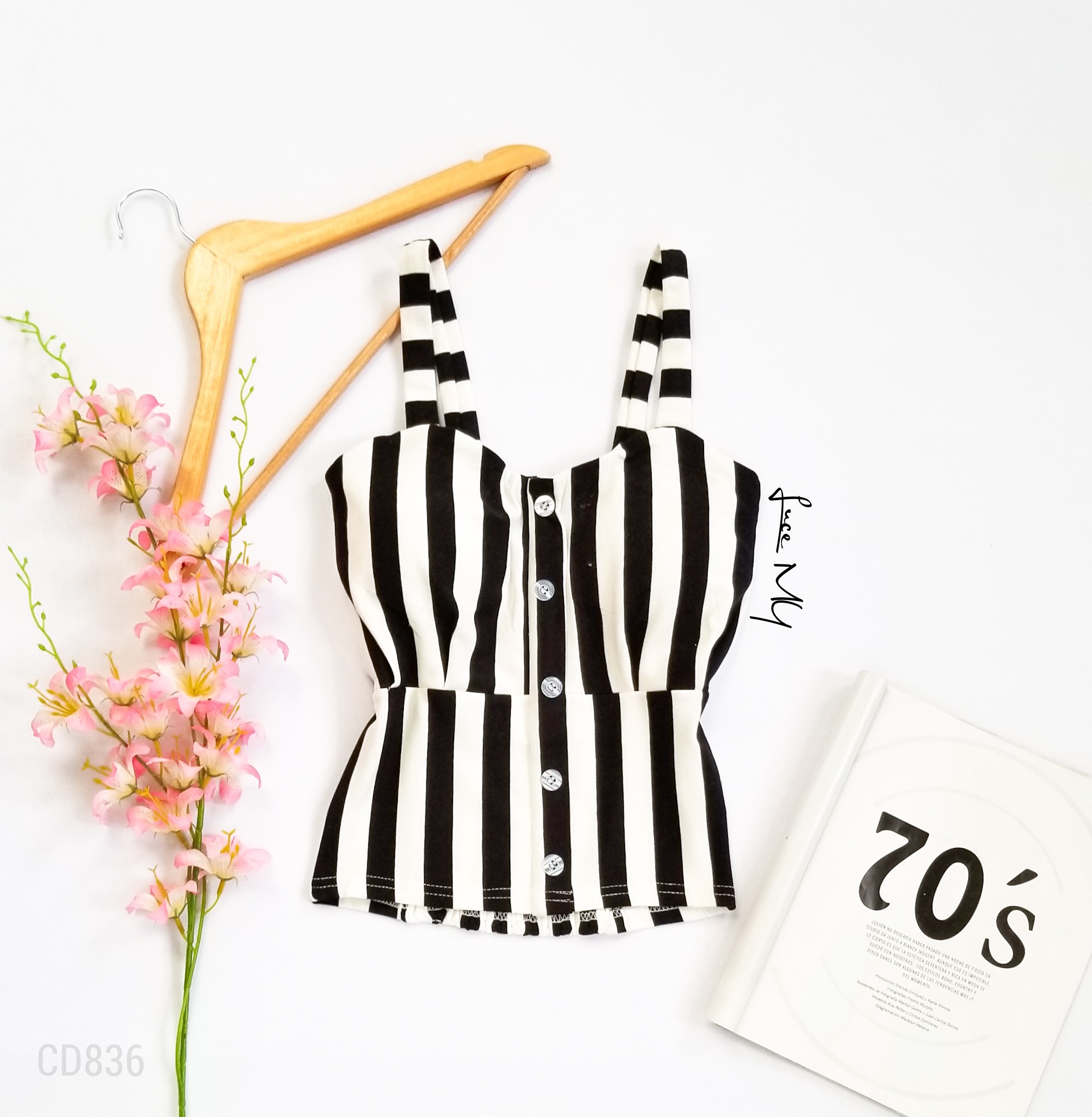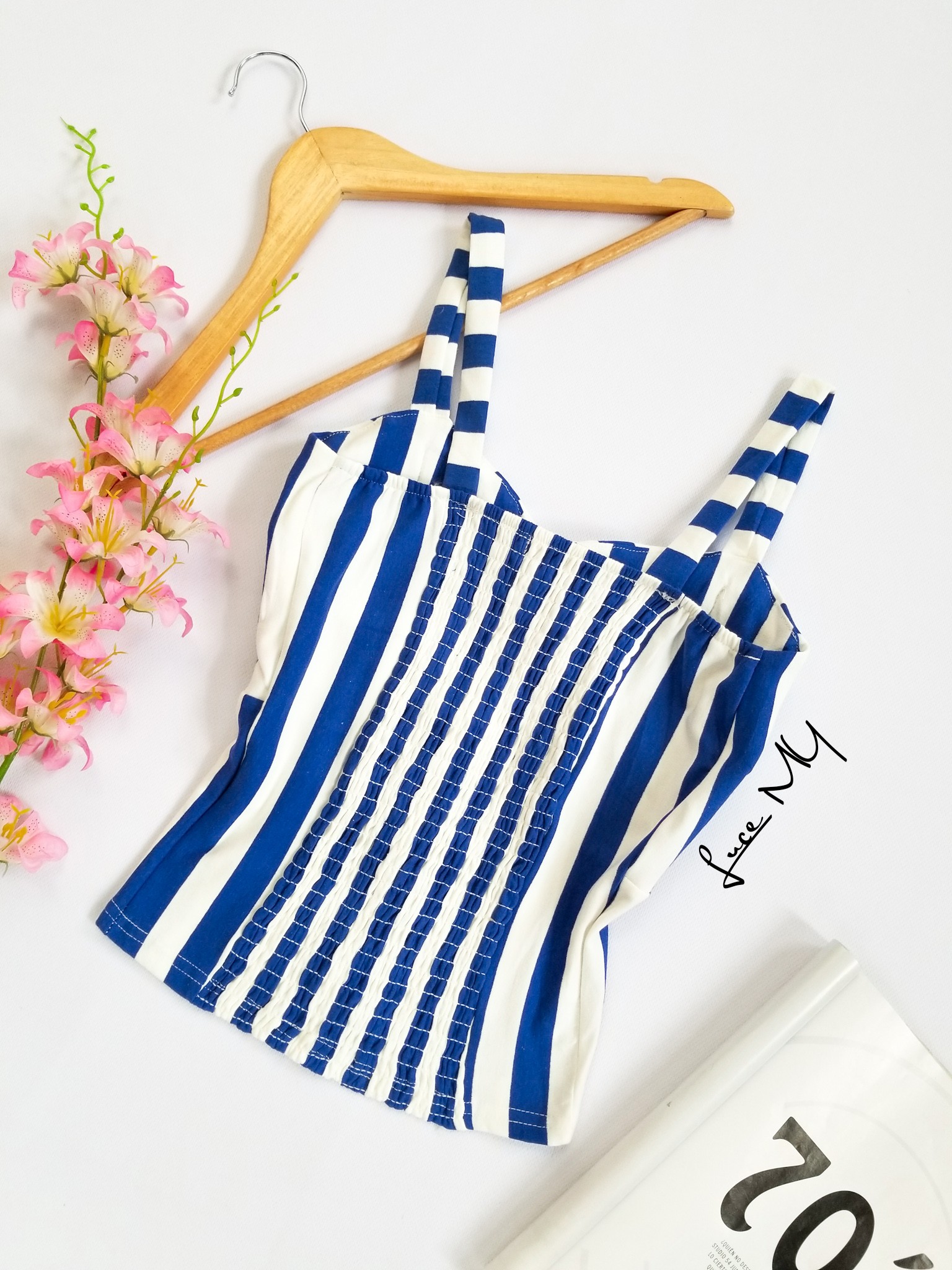 Descripción: Blusa de tirantes, con botones al frente, fruncido en la parte de atrás, material 100% algodón