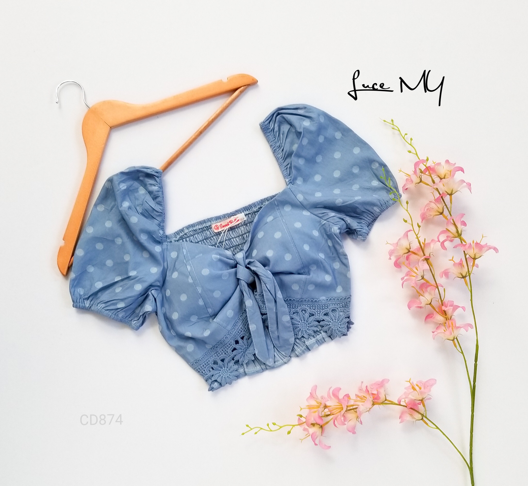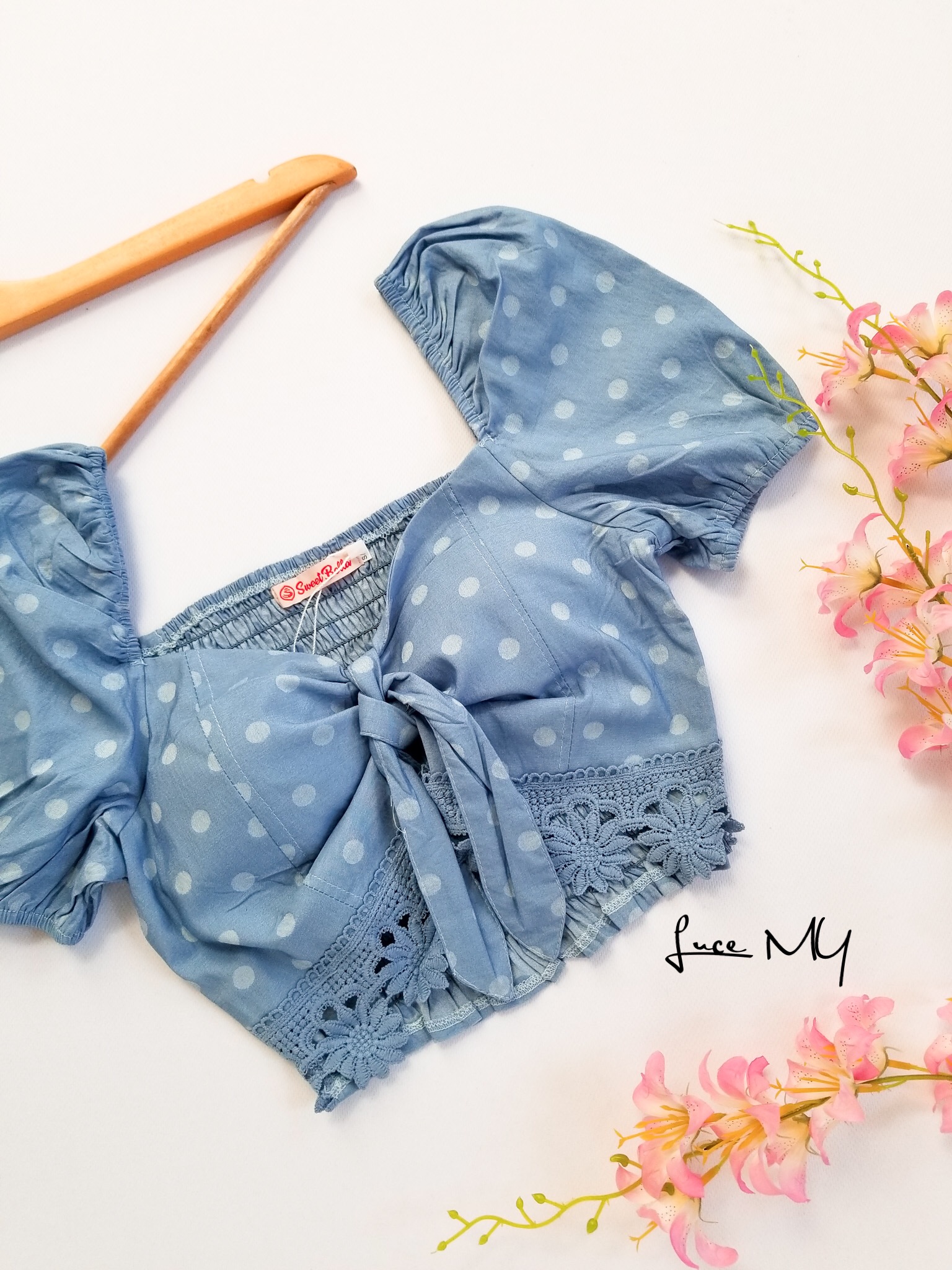 Descripción: Blusa Crop top, escote corazón nudo al frente, manga tipo farol corta, fruncida en la parte de atrás, material 65% algodón y 35% poliéster. Promoción si llevas dos blusas a solo por Q155.00