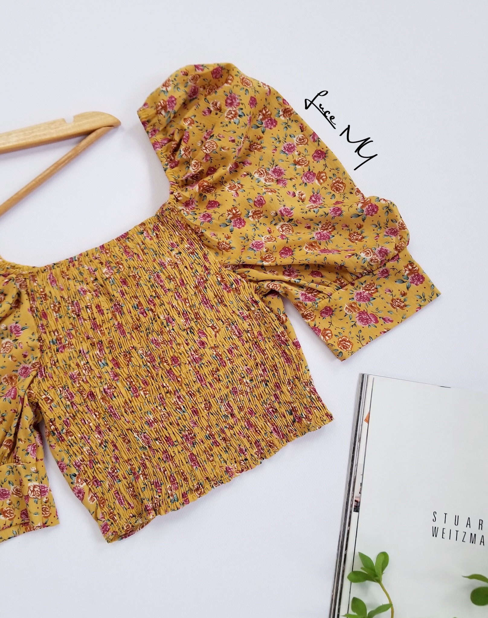 Descripción: Blusa Top Rosas, cuello cuadrado, mangas tipos farol corta, en la parte de adelante drapeado y en la parte de atrás fruncido, material 100% poliéster. Promoción si llevas dos blusas a solo por Q155.00