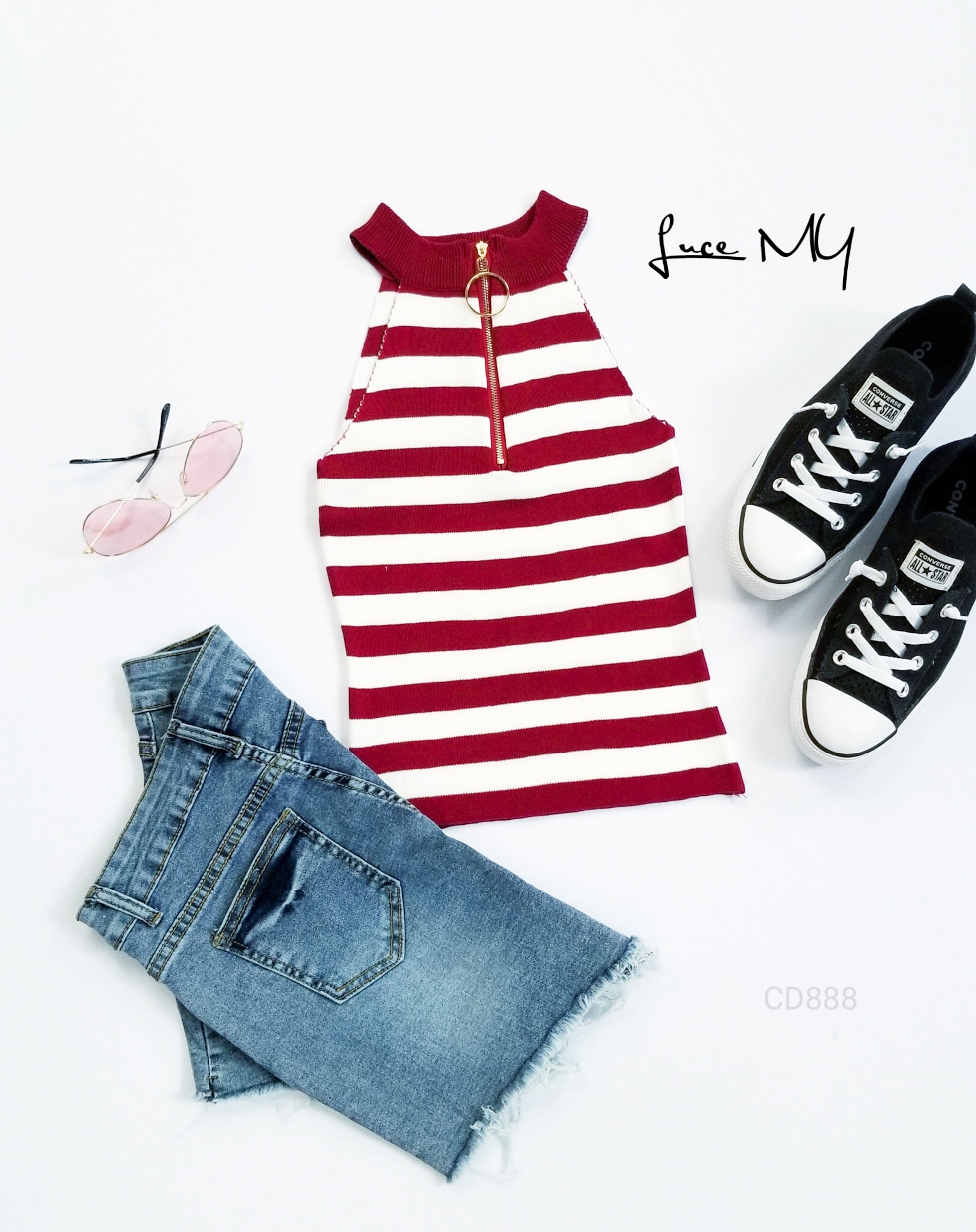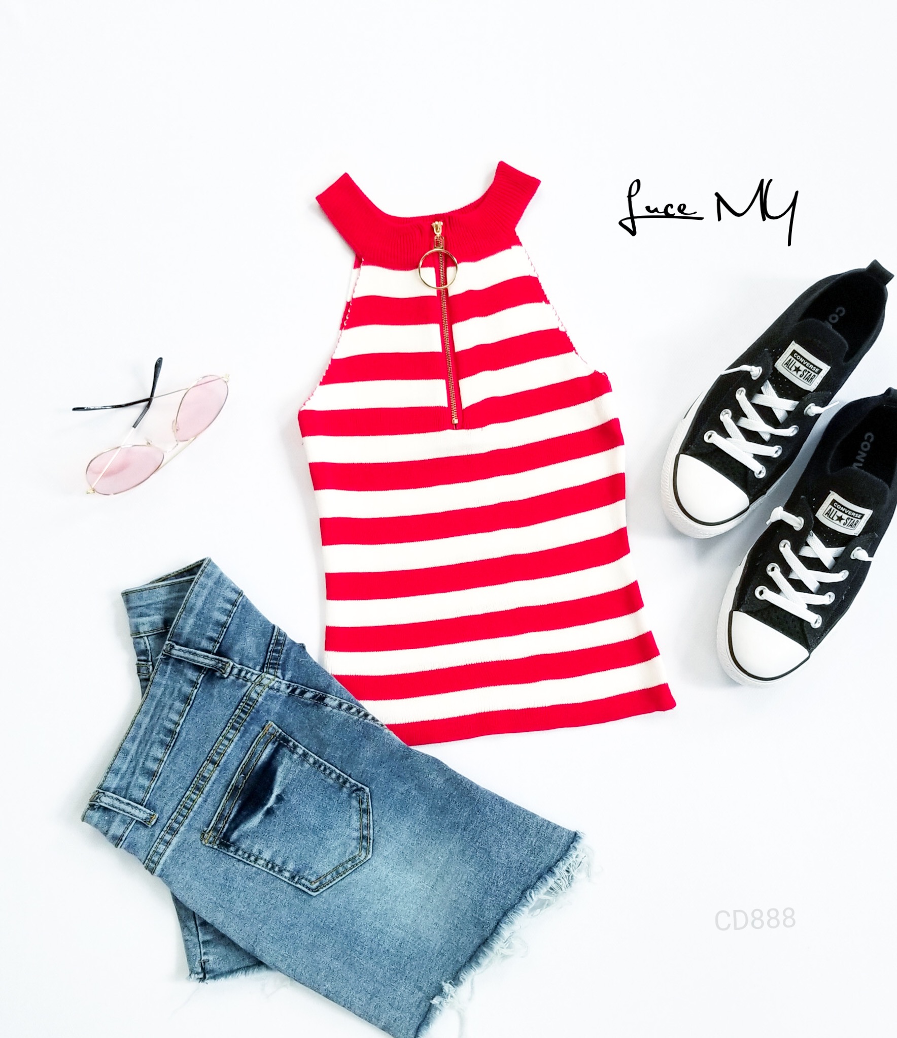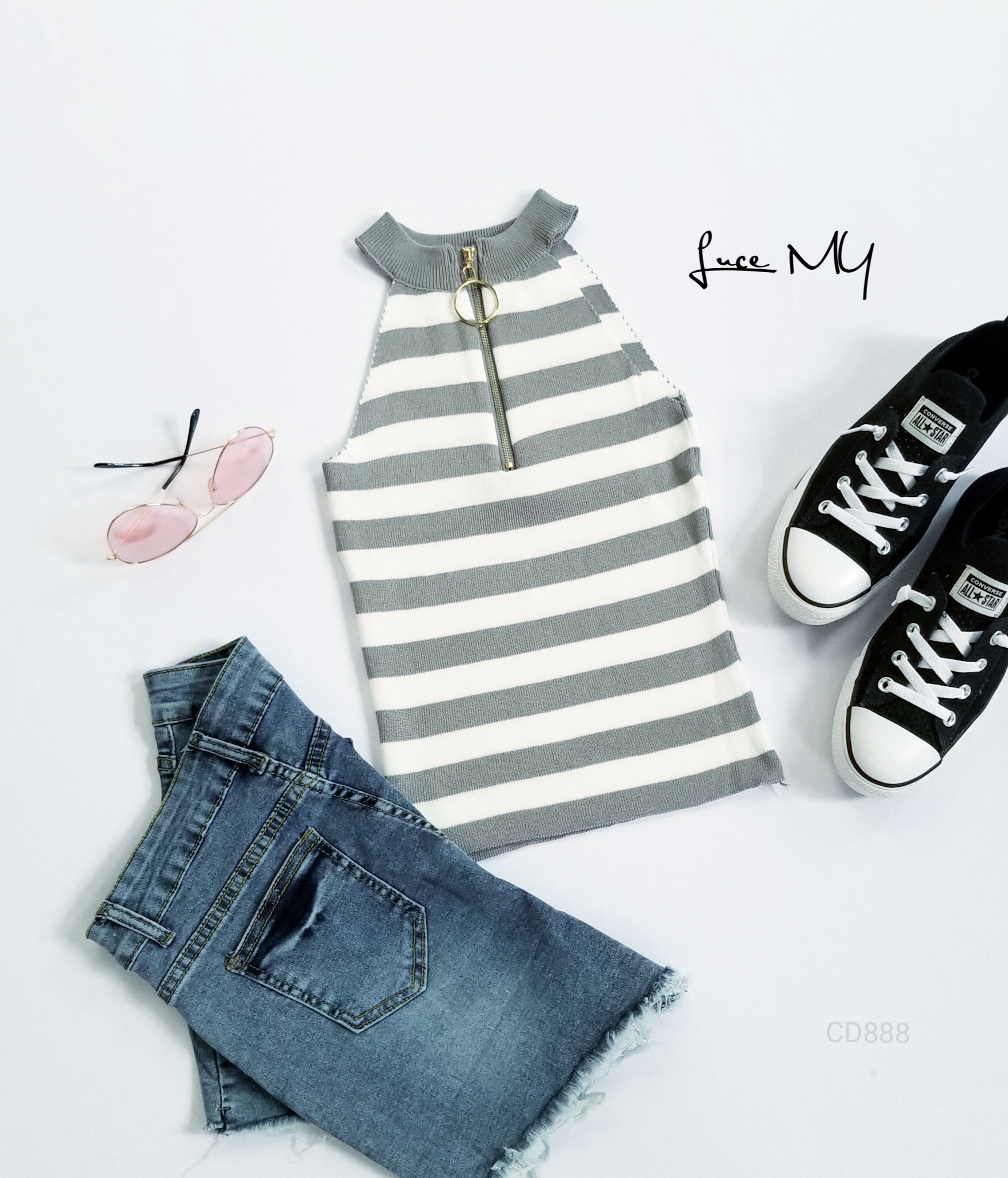 Descripción: Blusa Con Zíper, cuello medio alto, sin mangas, tela strech. promoción Si llevas dos blusa a solo por Q135.00