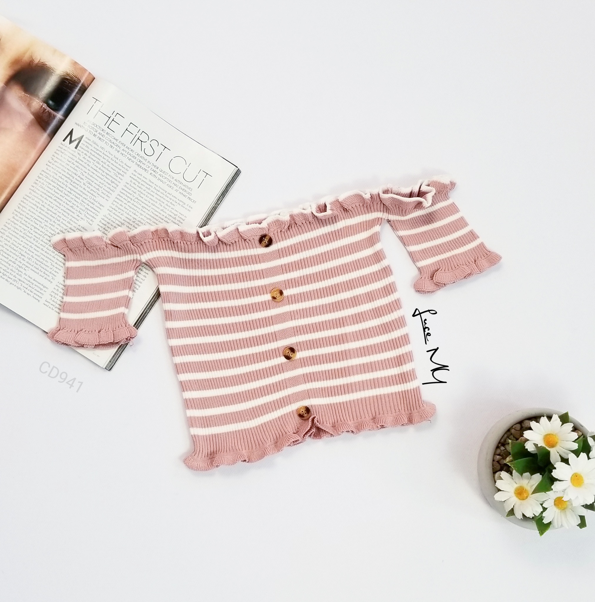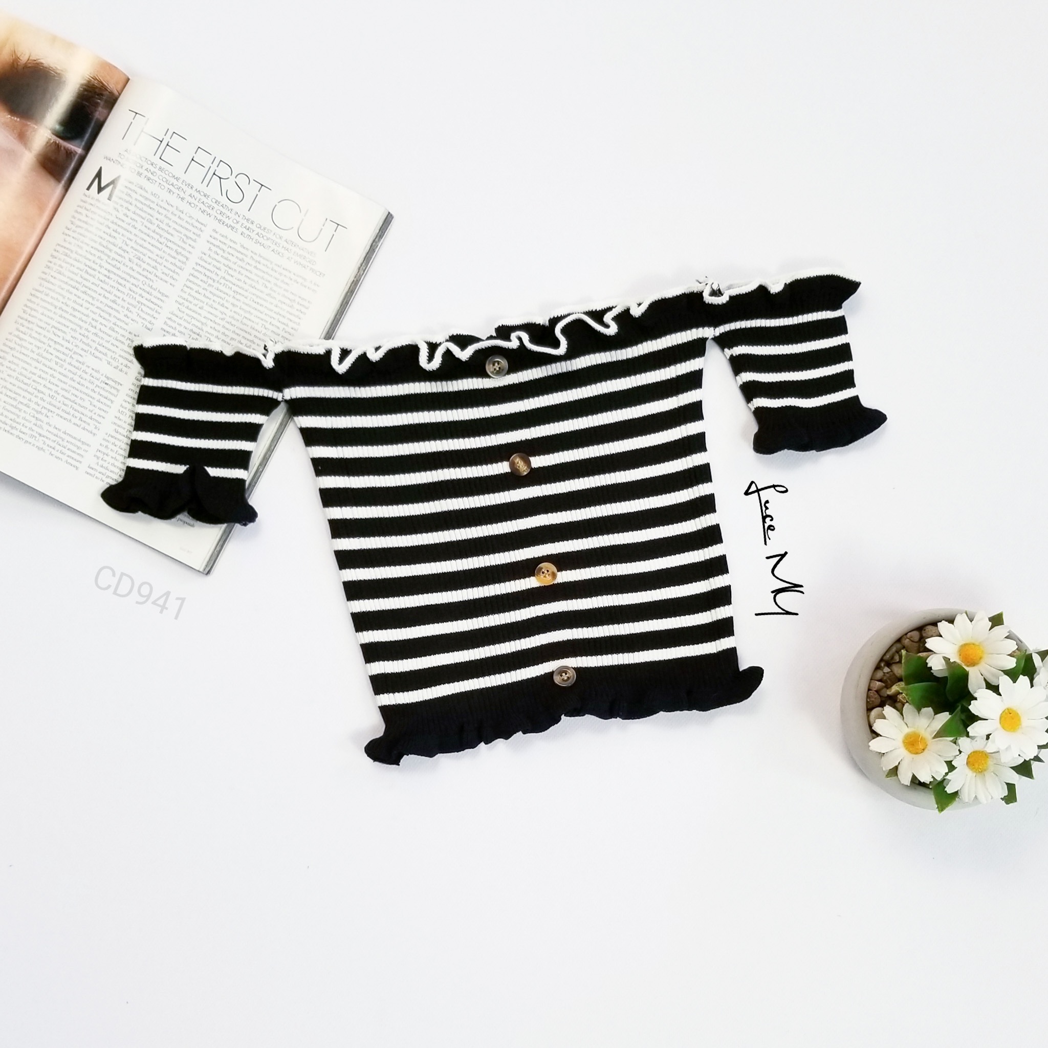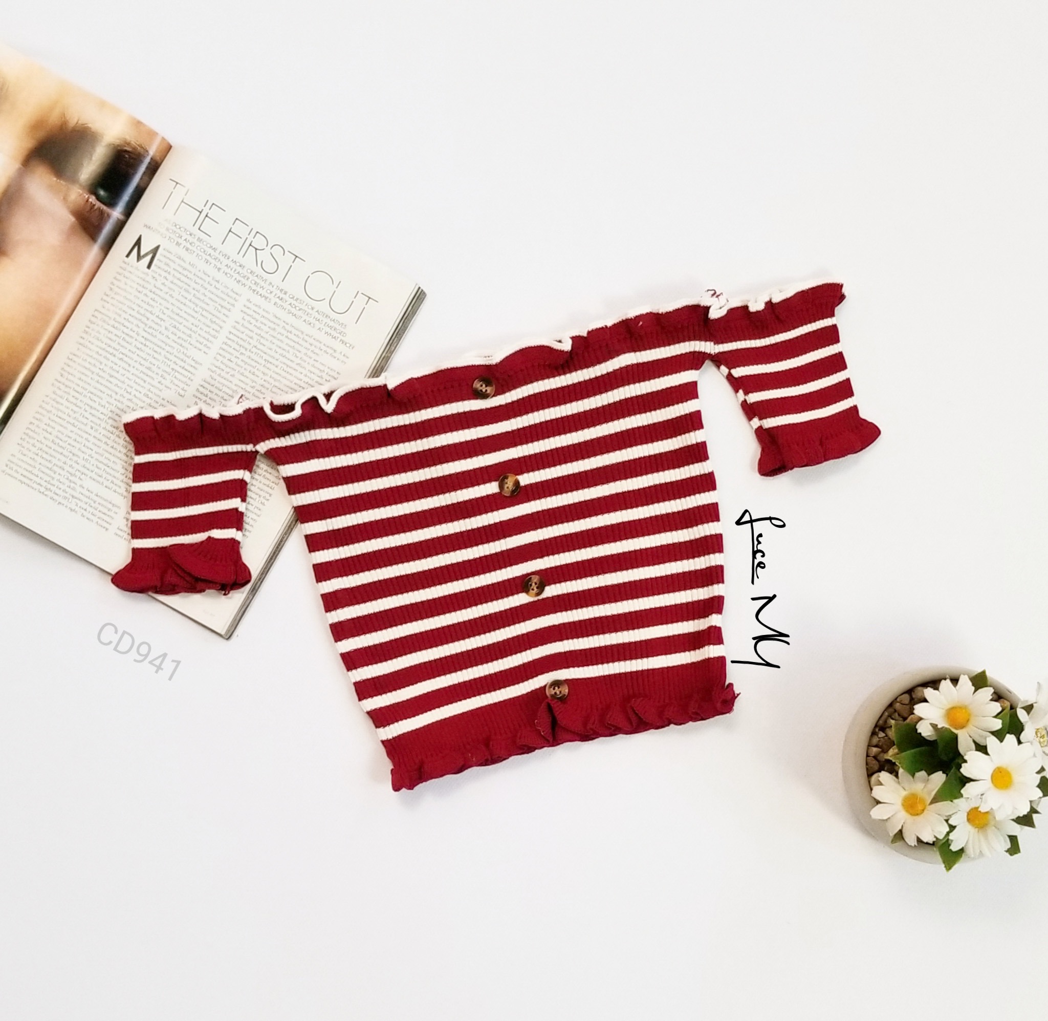 Descripción: Blusa Top Off Shoulder, manga corta, botones en la parte de enfrente, tipo de tela canalé.