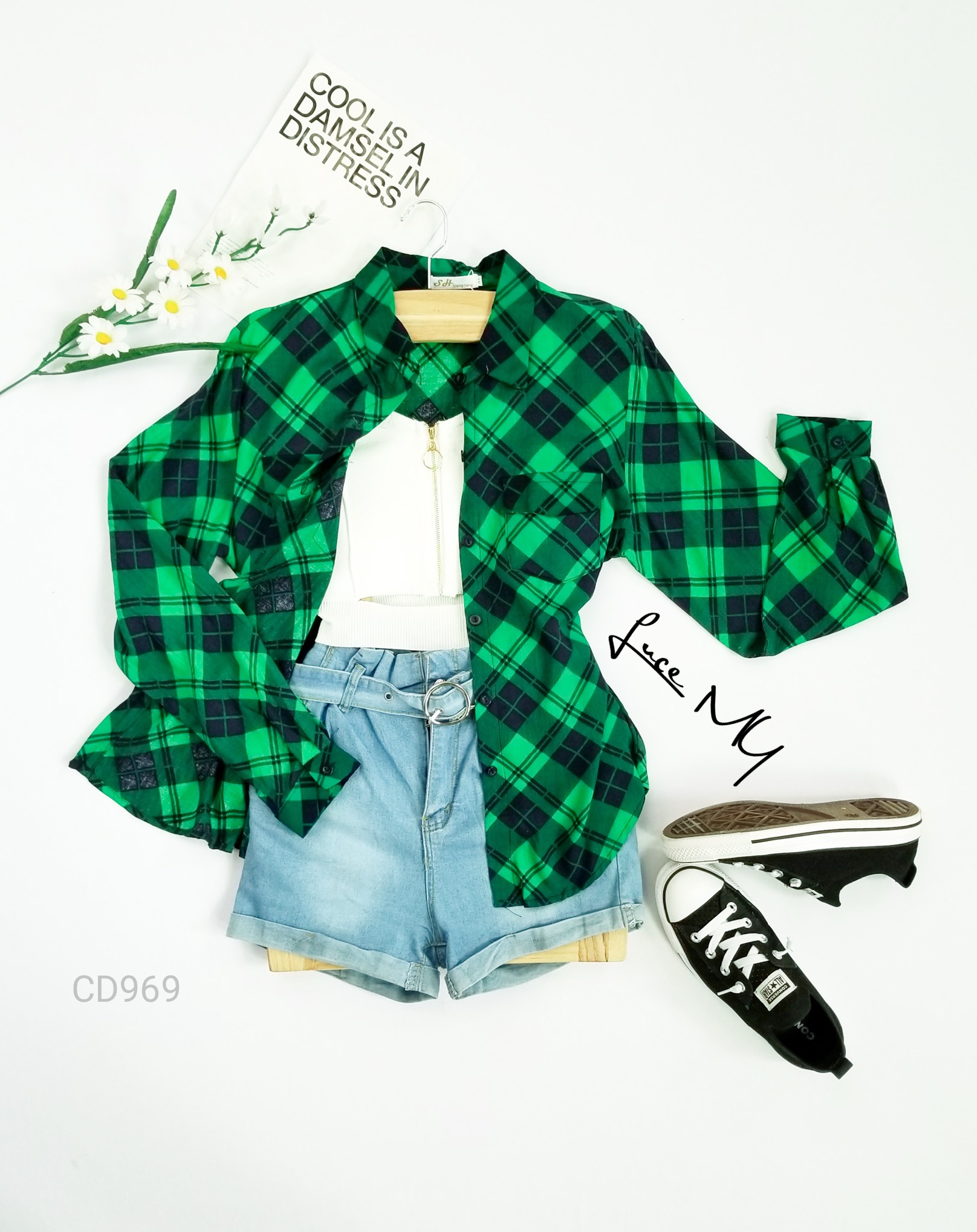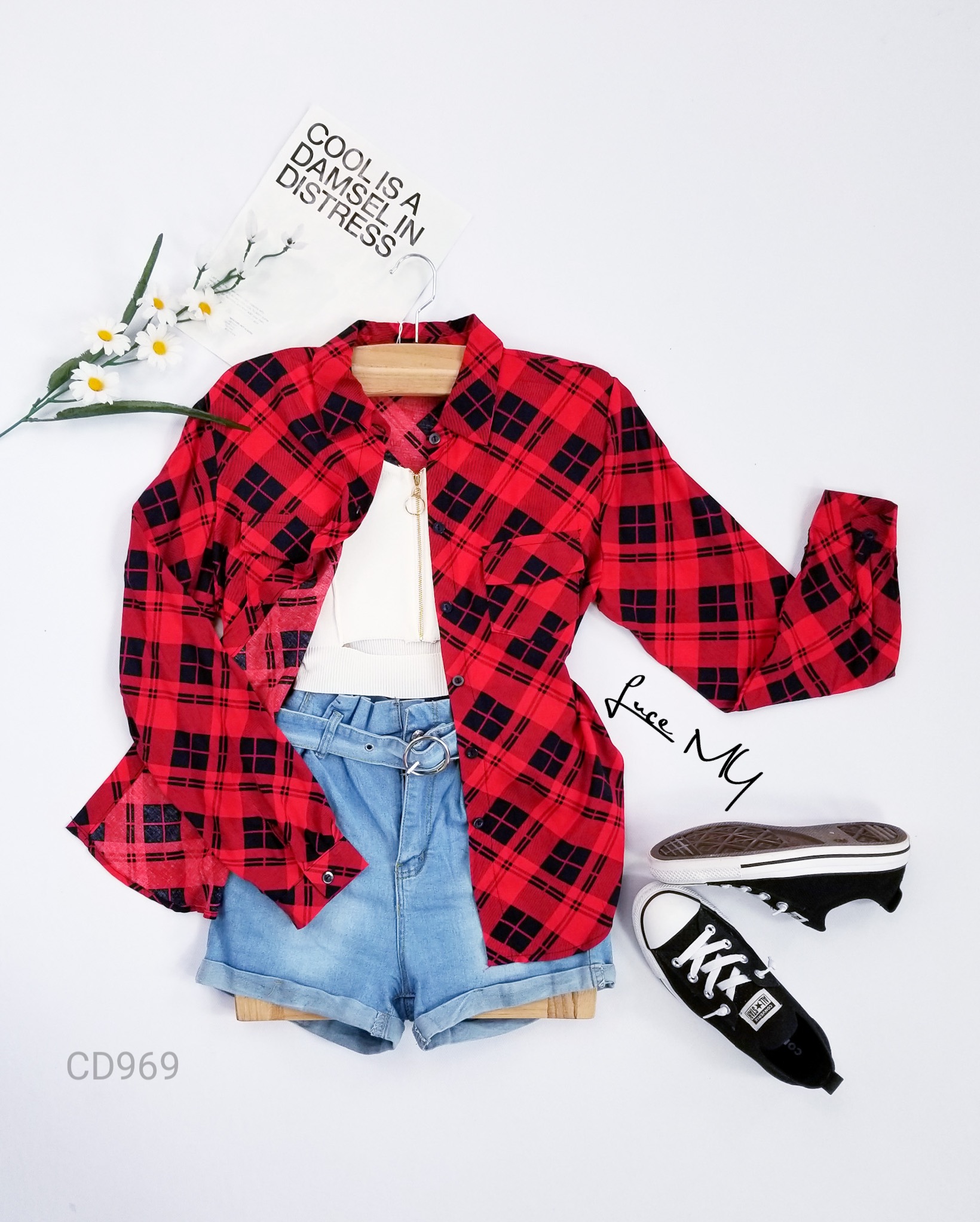 Descripción: Blusa de Cuadros, manga larga, con botones al frente, bolsillos en la parte de enfrente, material 100% poliéster